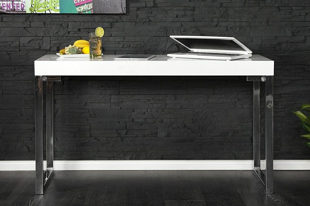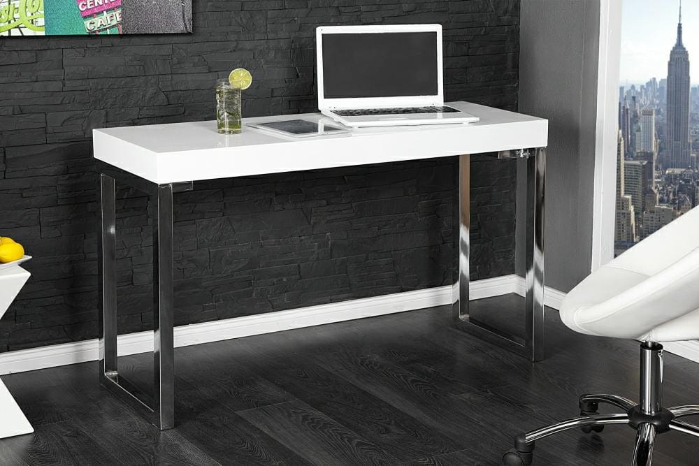 Białe lakierowane biurko 120x60 cm, chromowane stalowe nogi