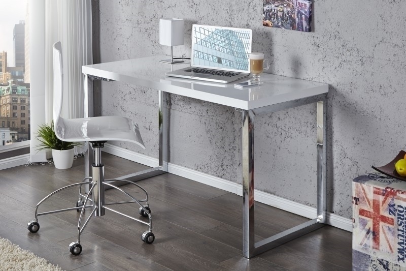 Białe lakierowane biurko 140x60cm chromowane stalowe nogi