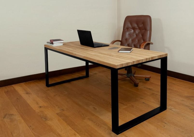 Nietuzinkowe, nowoczesne, loftowe biurko dla wymagających. Jego składowe to tylko stal i drewno czyli klasyka, która sprawia, że mamy do czynienia z produktem najwyższej jakości, który zapewnia prestiż, wytrzymałość i poczucie zadowolenia z jego użytkowania na długie długie lata. Jego znak rozpoznawczy to grupy 4 cm blat roboczy wykonany z drewna dębowego najwyższej jakości osadzony na nogach wykonanych w całości ze stali. Blat prezentowanego biurka zabezpieczony jest najwyższej jakości olejowoskiem, który sprawia że miejsce robocze oprócz walorów praktycznych również doskonale wygląda podkreślając naturalnych charakter zastosowanego drewna. Natomiast nogi to malowana proszkowo stal. Całości dopełnia idealne spasowanie, które sprawia, że biurko jest i wygląda jak mebel klasy premium.