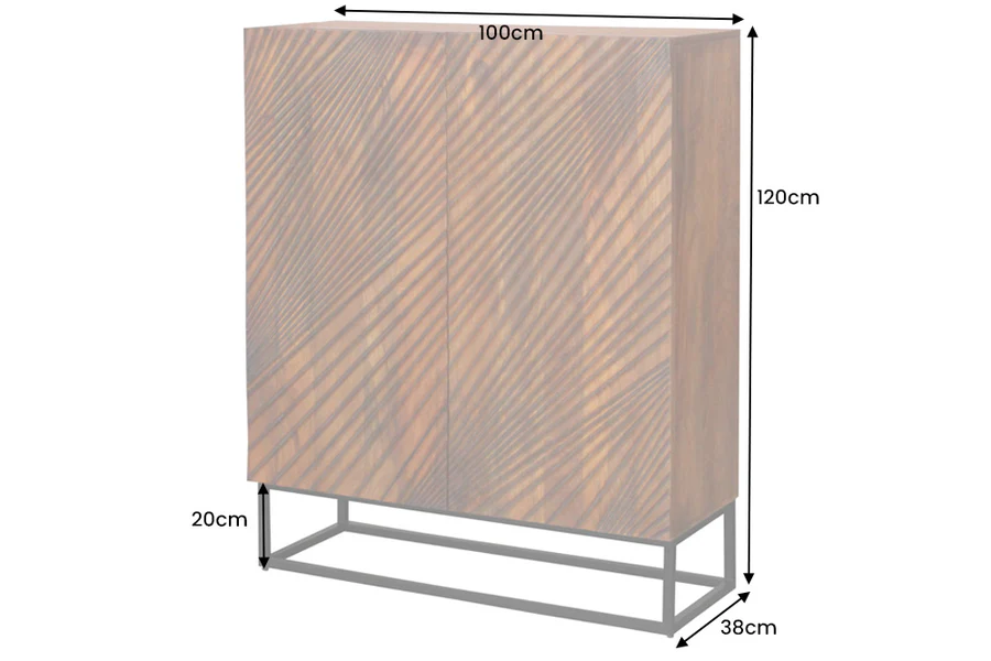 Dzięki uniwersalnej, a zarazem wyrazistej stylistyce, komoda z naturalnego drewna mango doskonale wpisze się w nowoczesne aranżacje loftowe czy industrialne, jak również w bardziej tradycyjne, eleganckie wnętrza. Optymalne wymiary (120 cm wysokości, 100 cm szerokości i 38 cm głębokości) sprawiają, że komoda sprawdzi się zarówno w przestronnych salonach, jak i w kameralnych pomieszczeniach, dodając im wyjątkowego stylu i funkcjonalności.