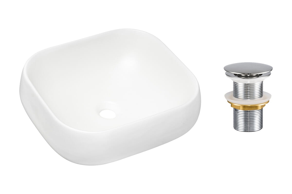 Ceramiczna umywalka nablatowa, w kolorze białym 45 cm SOLID WHITE