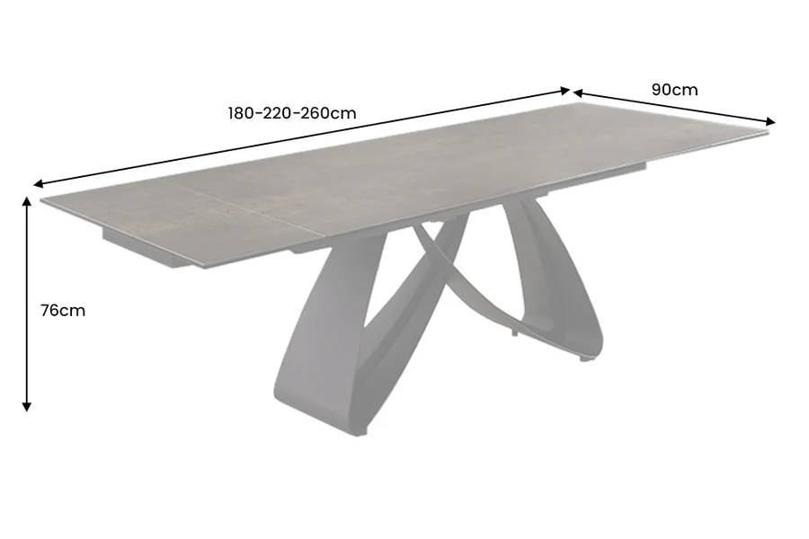 Ceramiczny stół rozkładany, blat imitujący kamień, metalowe nogi 180-260 cm OVIL