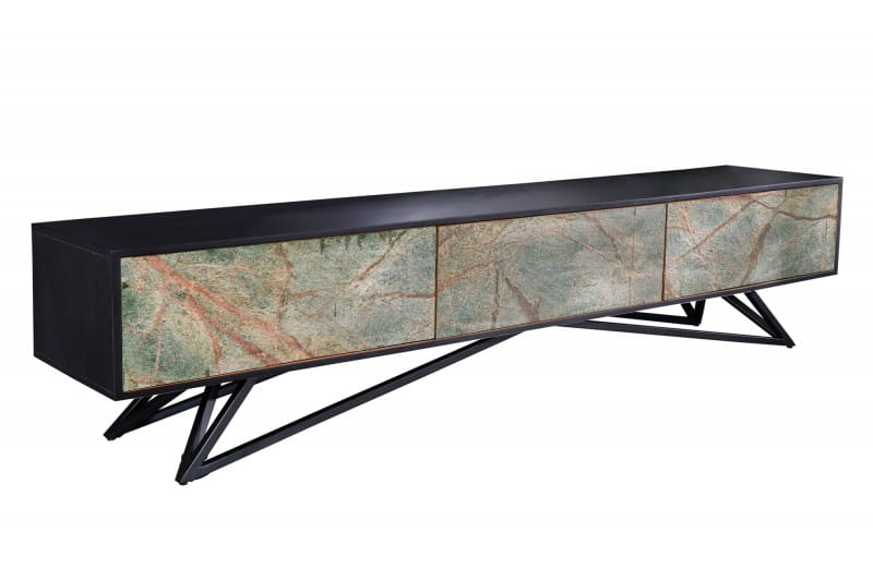 Czarna szafka RTV 200 cm z drewna akacjowego oraz kamienia, CHARM