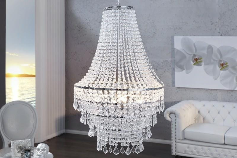 Duży ozdobny żyrandol do salonu, jadalni, plastikowe kryształki