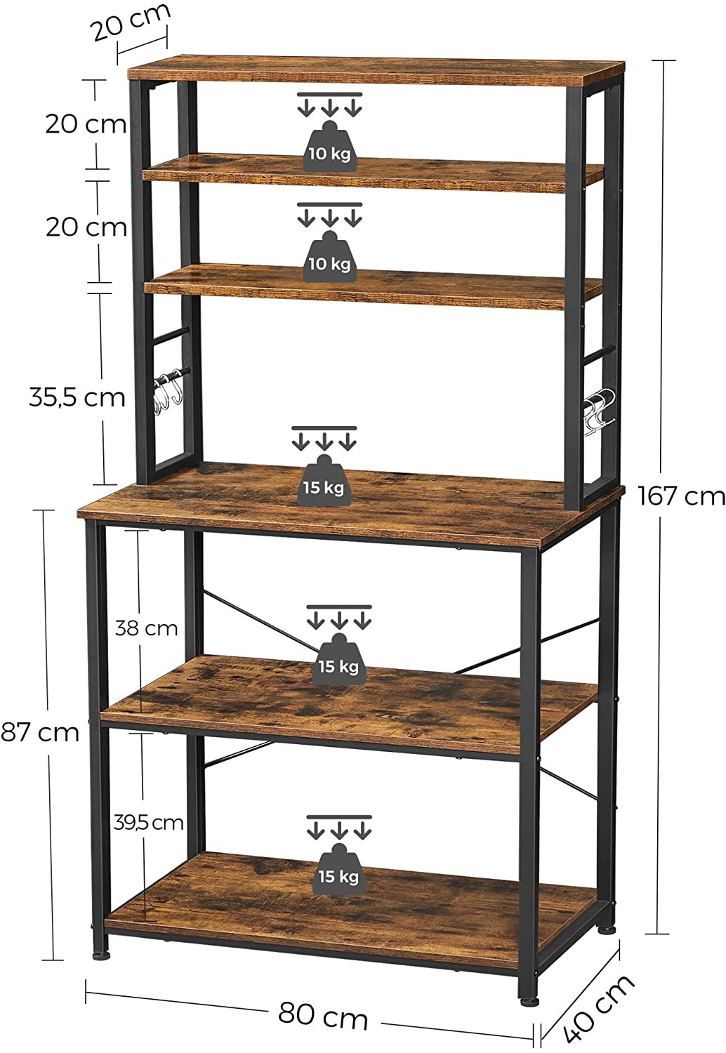 - mebel posiada 6 pojemnych półek z płyty wiórowej w kolorze postarzanego drewna