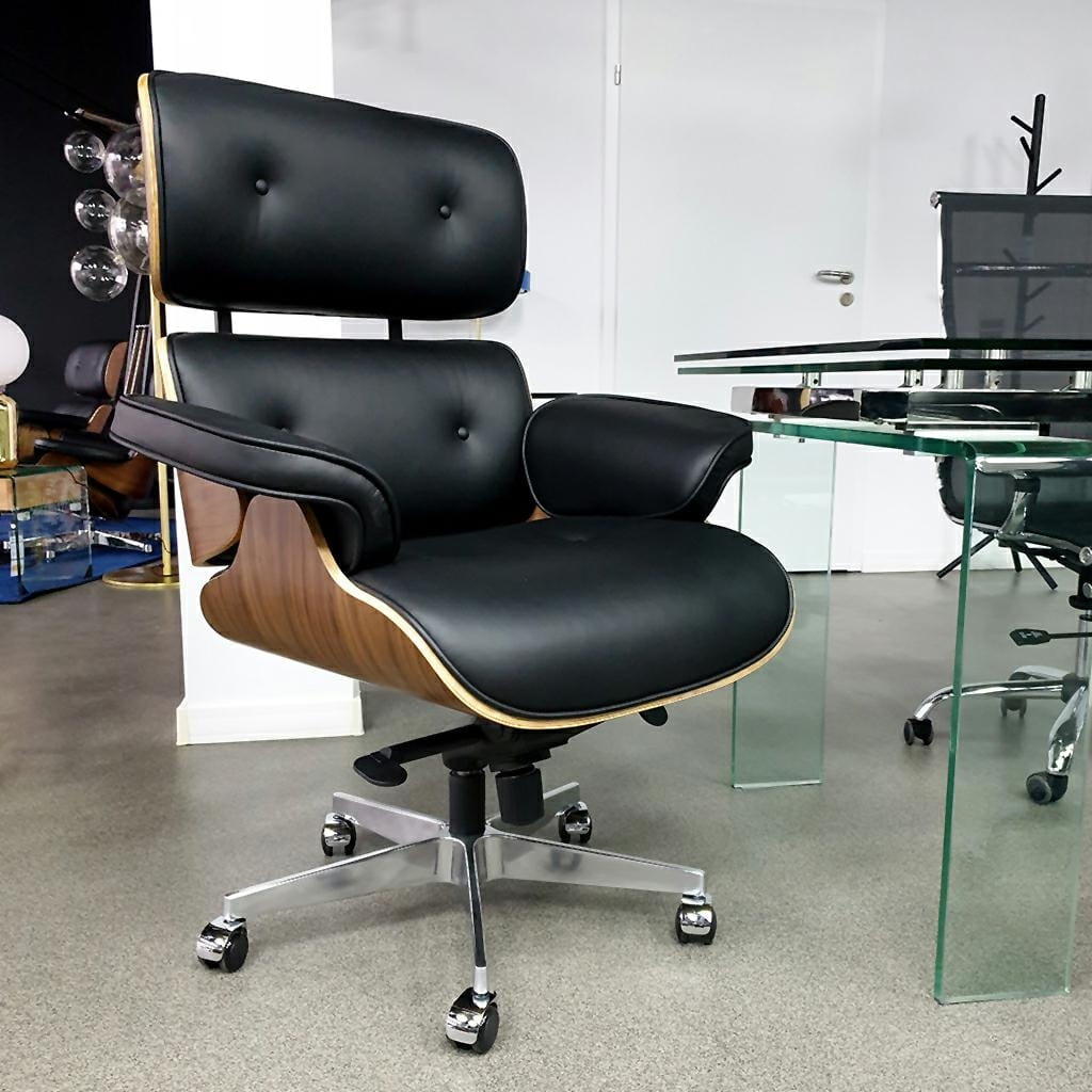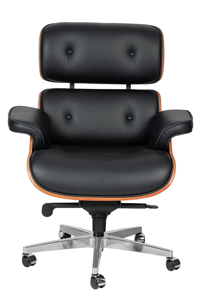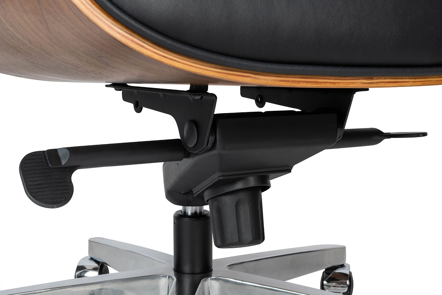 Fotel biurowy LA BUSINESS czarny - sklejka orzech, skóra naturalna, stal polerowana