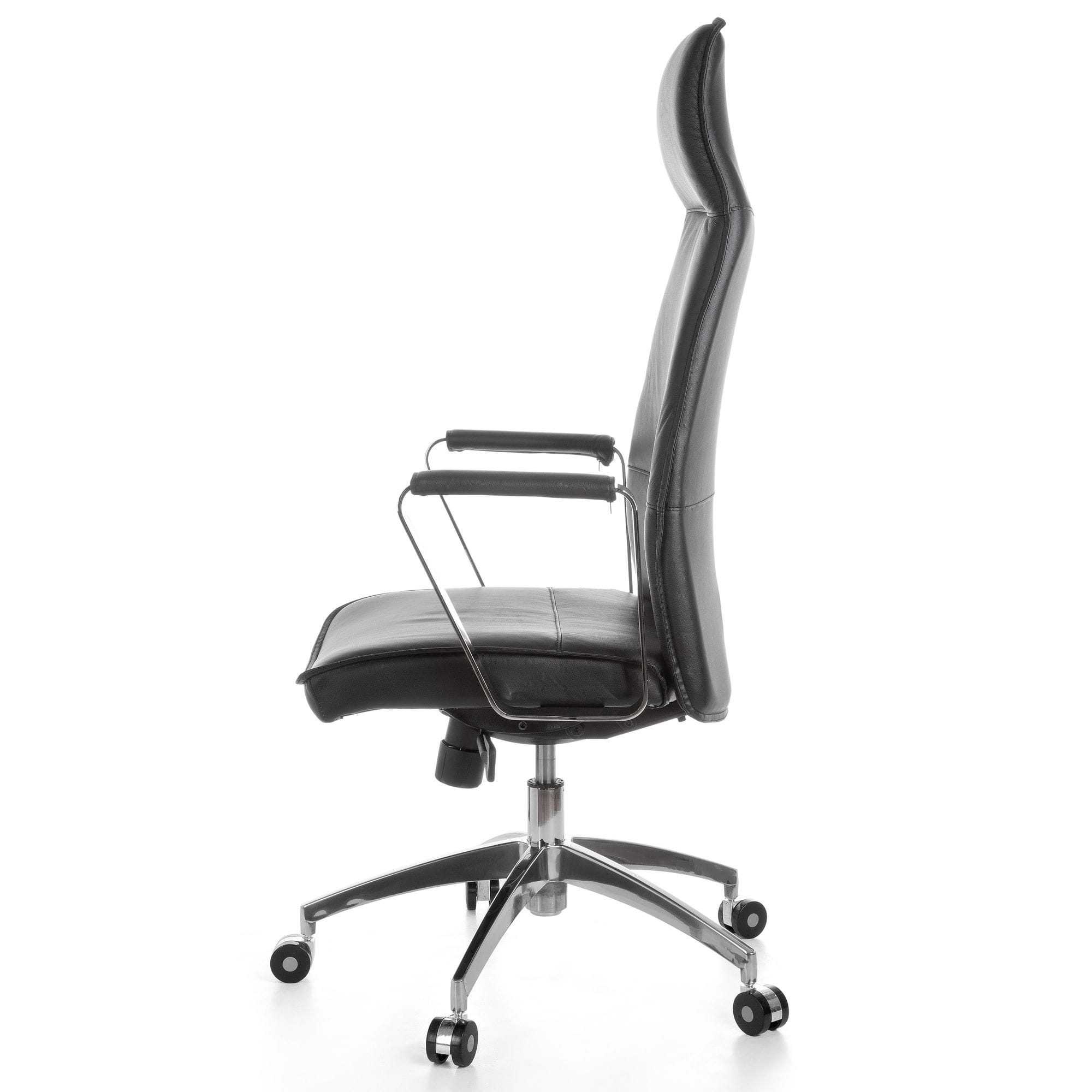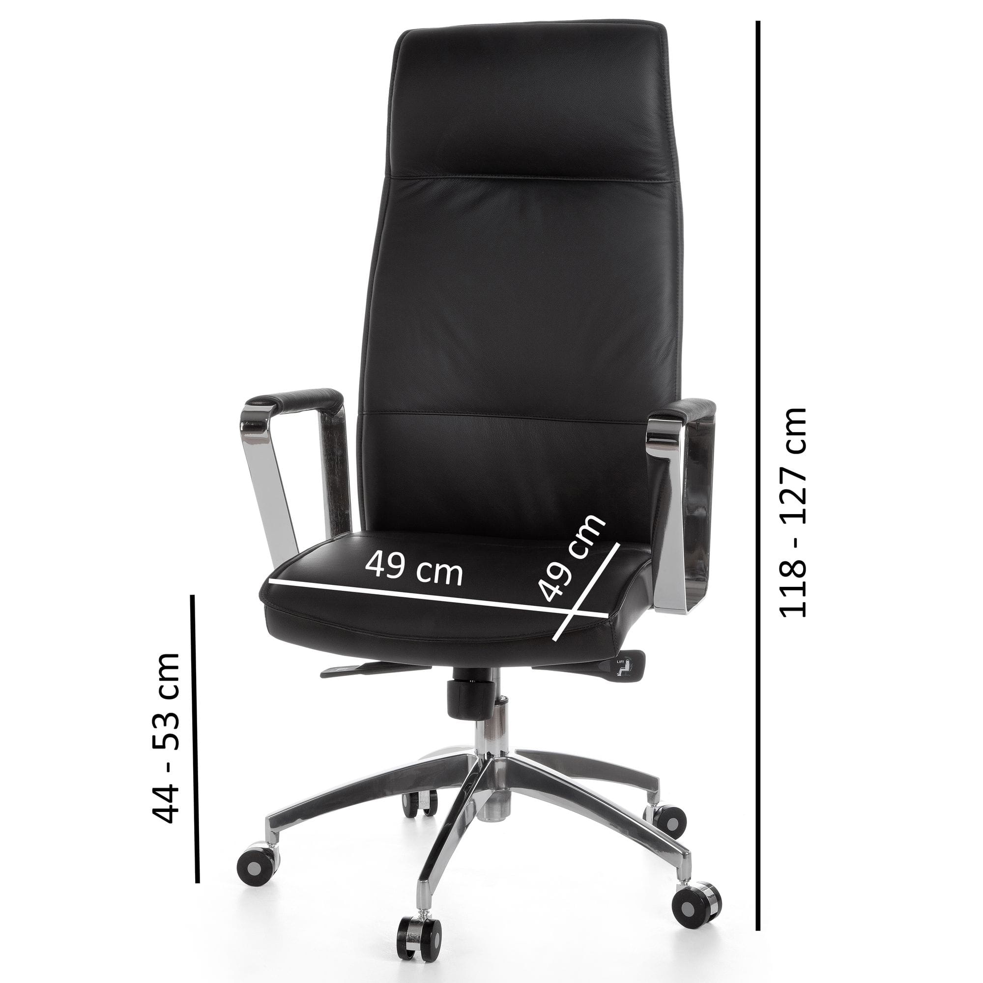 Fotel biurowy z naturalnej skóry w kolorze czarnym, aluminiowy stelaż ANDY