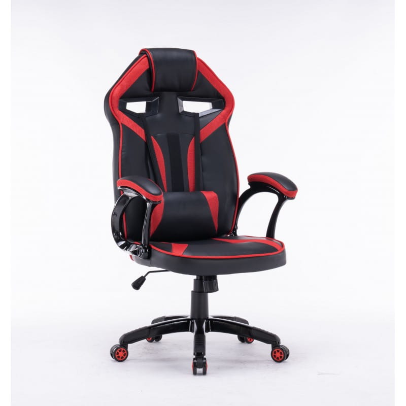 Nowoczesny fotel przeznaczony dla pasjonatów gier komputerowych to świetny wybór do pokoju młodzieżowego lub innego miejsca przeznaczonego w naszym domu do tej rozrywki. Ponadczasowy, klasyczny kolor czarny w duecie z czerwoną barwą detali wpisze się w każdą aranżację, bez względu na jej charakter. Fotel DIREN stanie niezbędnym siedziskiem o wielu zaletach które z pewnością docenimy podczas jego użytkowania.