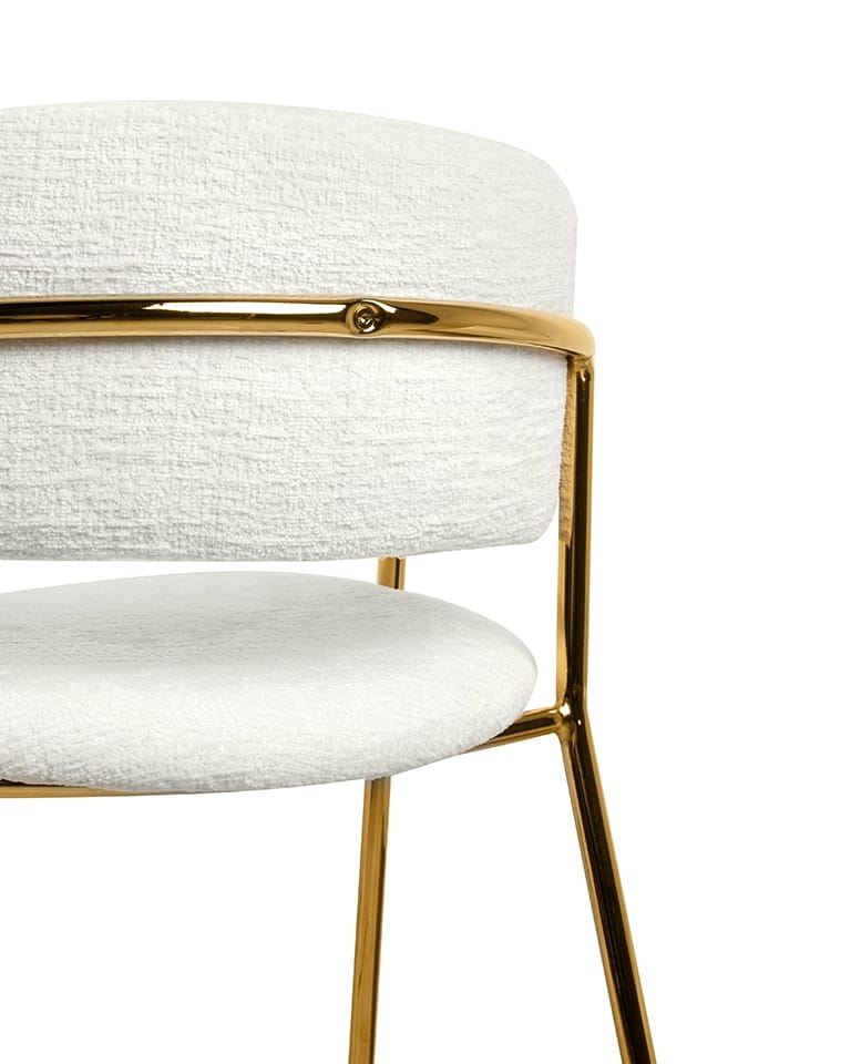 Hoker tapicerowany tkaniną w białym kolorze ze złotym stelażem, NOVA