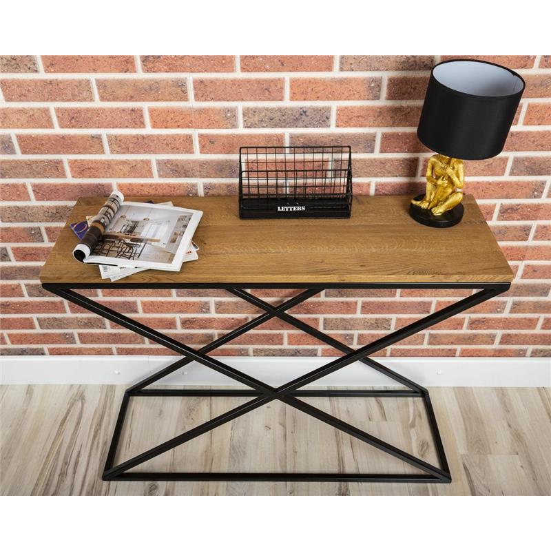 Industrialna dębowa konsola 112x37cm czarny metalowy stelaż
