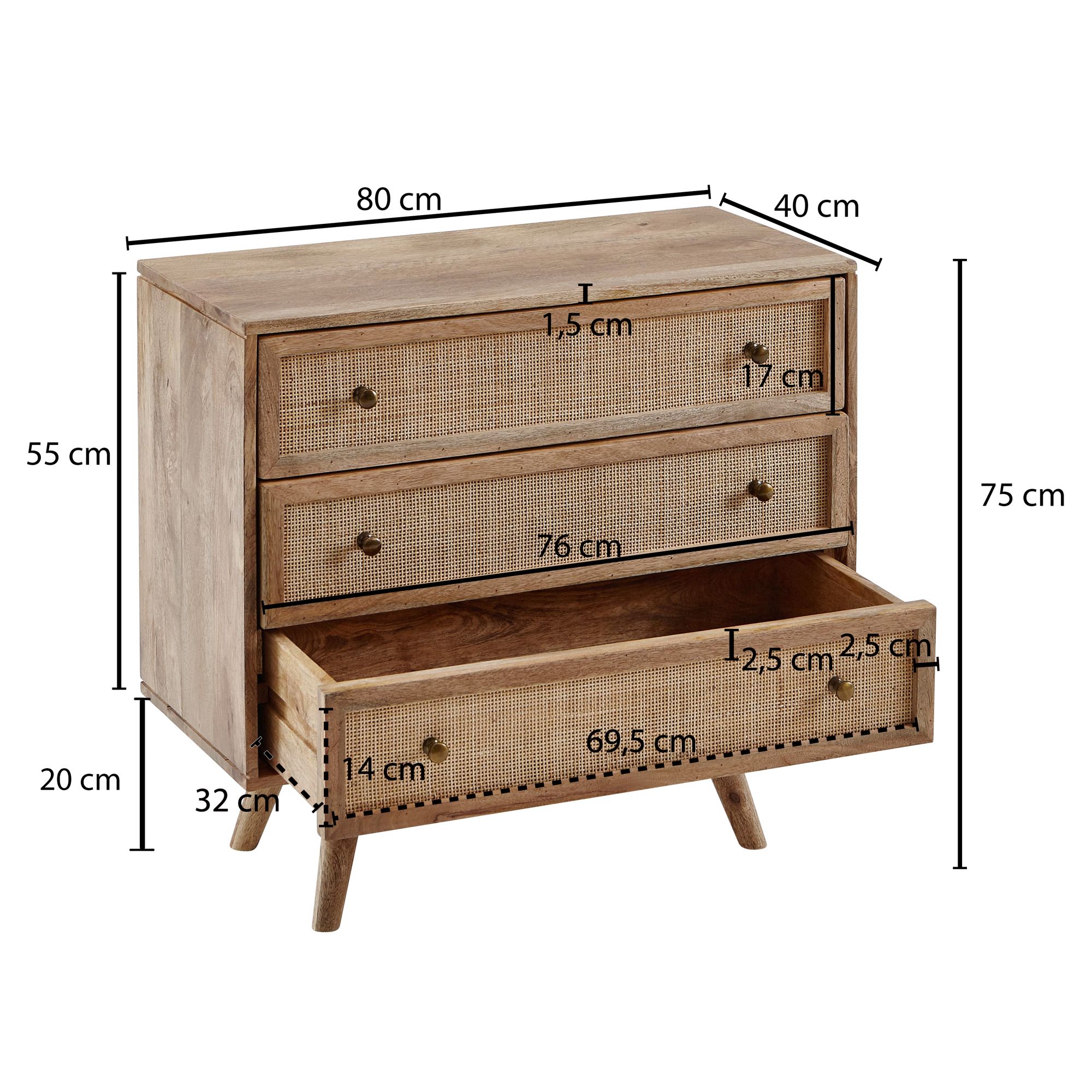 Komoda boho 80 cm z litego drewna mango oraz rattan, KUGI
