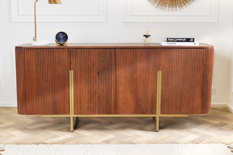 Komoda mango 160 cm na złotych nogach, ryflowane fronty GRETA