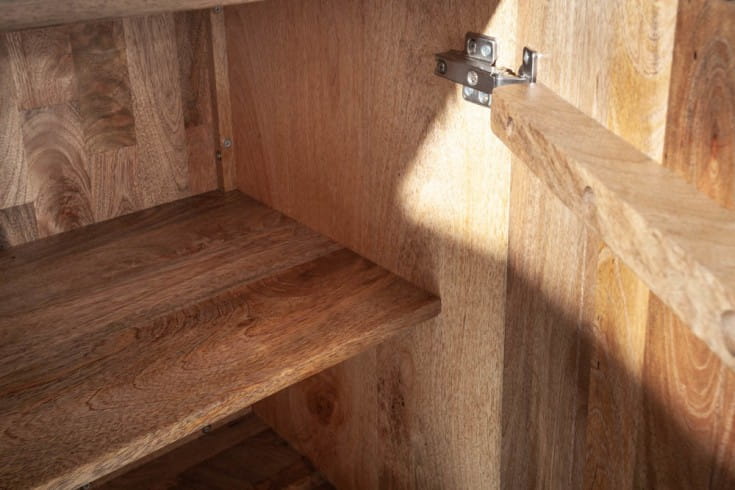 - korpus z naturalnego drewna mango z ozdobnymi frontami
