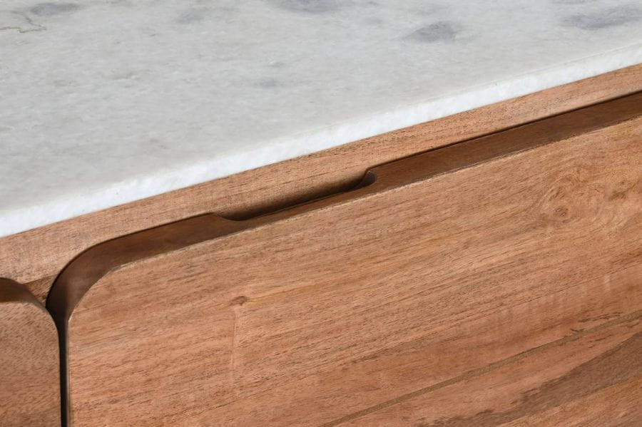 Komoda z drewna mango na metalowych nogach, marmurowy blat 160/78 cm BELLINA