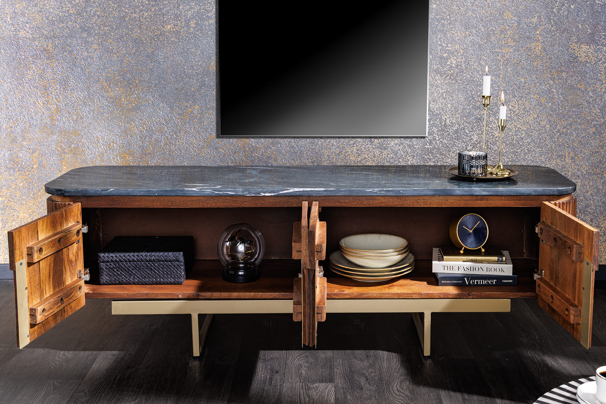 Komoda z drewna mango na metalowych nogach, marmurowy blat w kolorze czarnym 160 cm GRETA II
