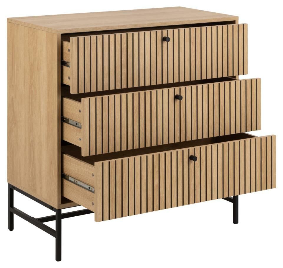 Komoda z lamelami, trzy szuflady na metalowej podstawie - MEGGI