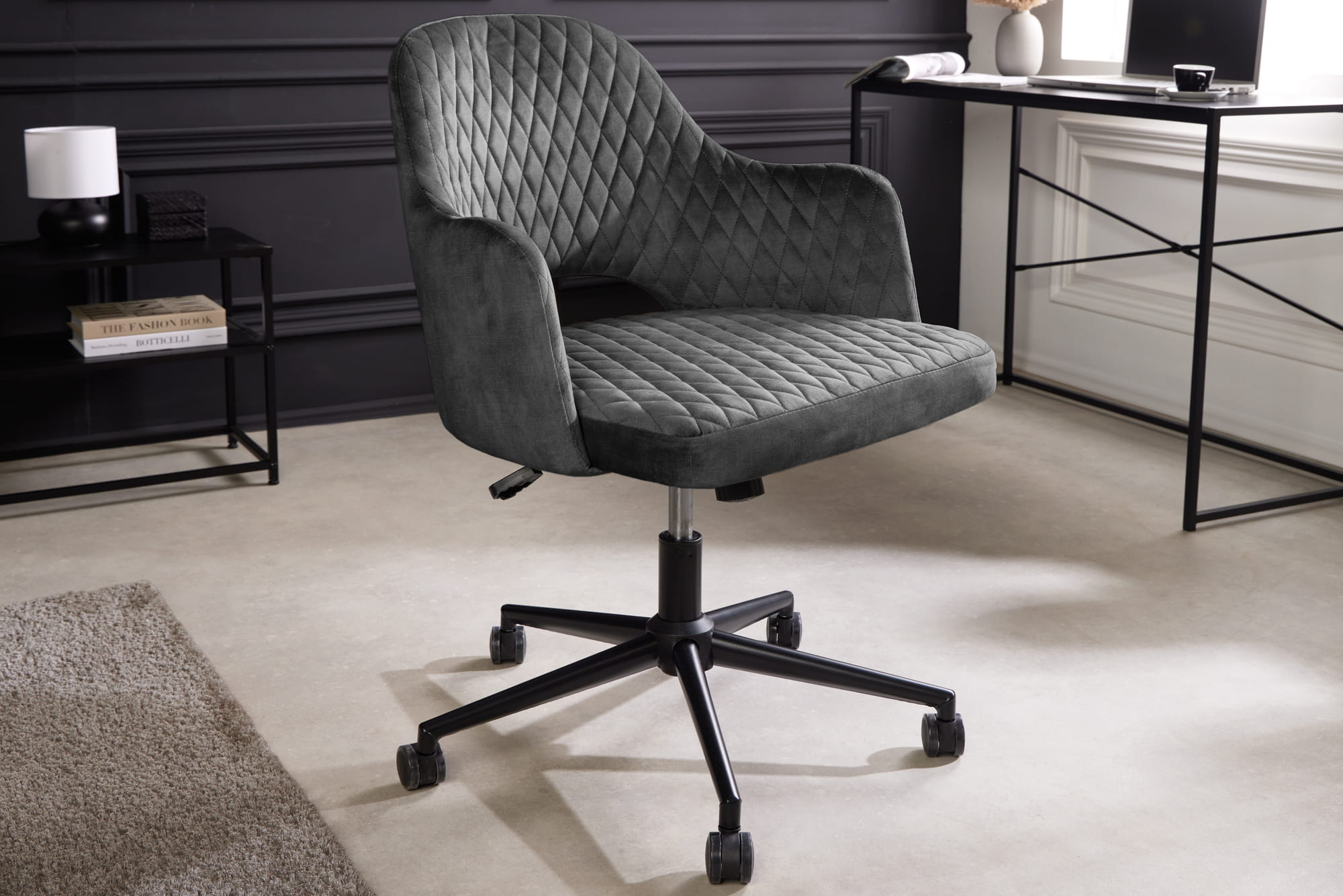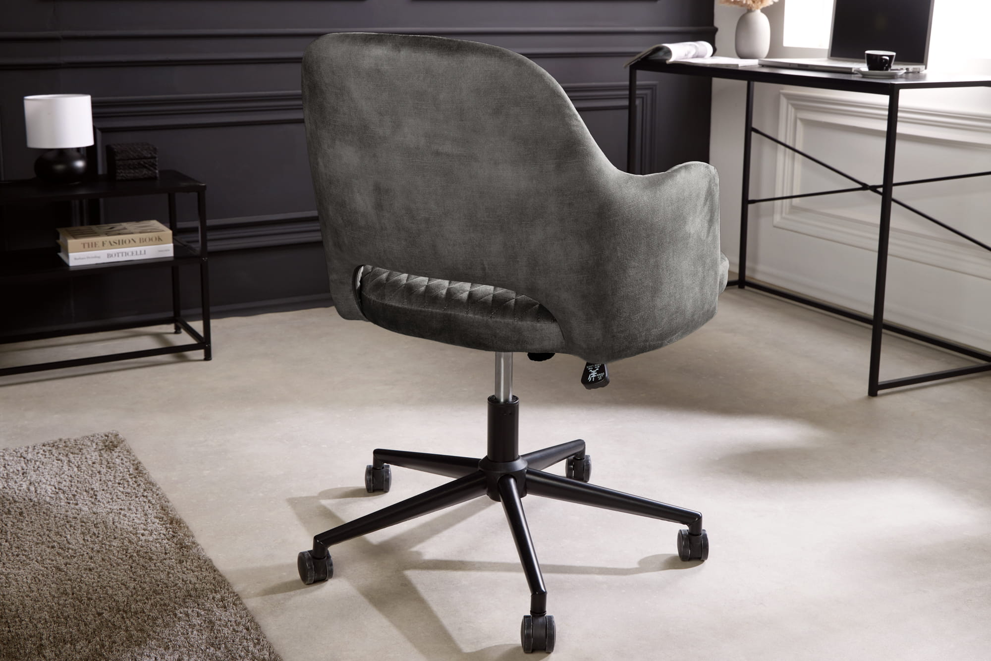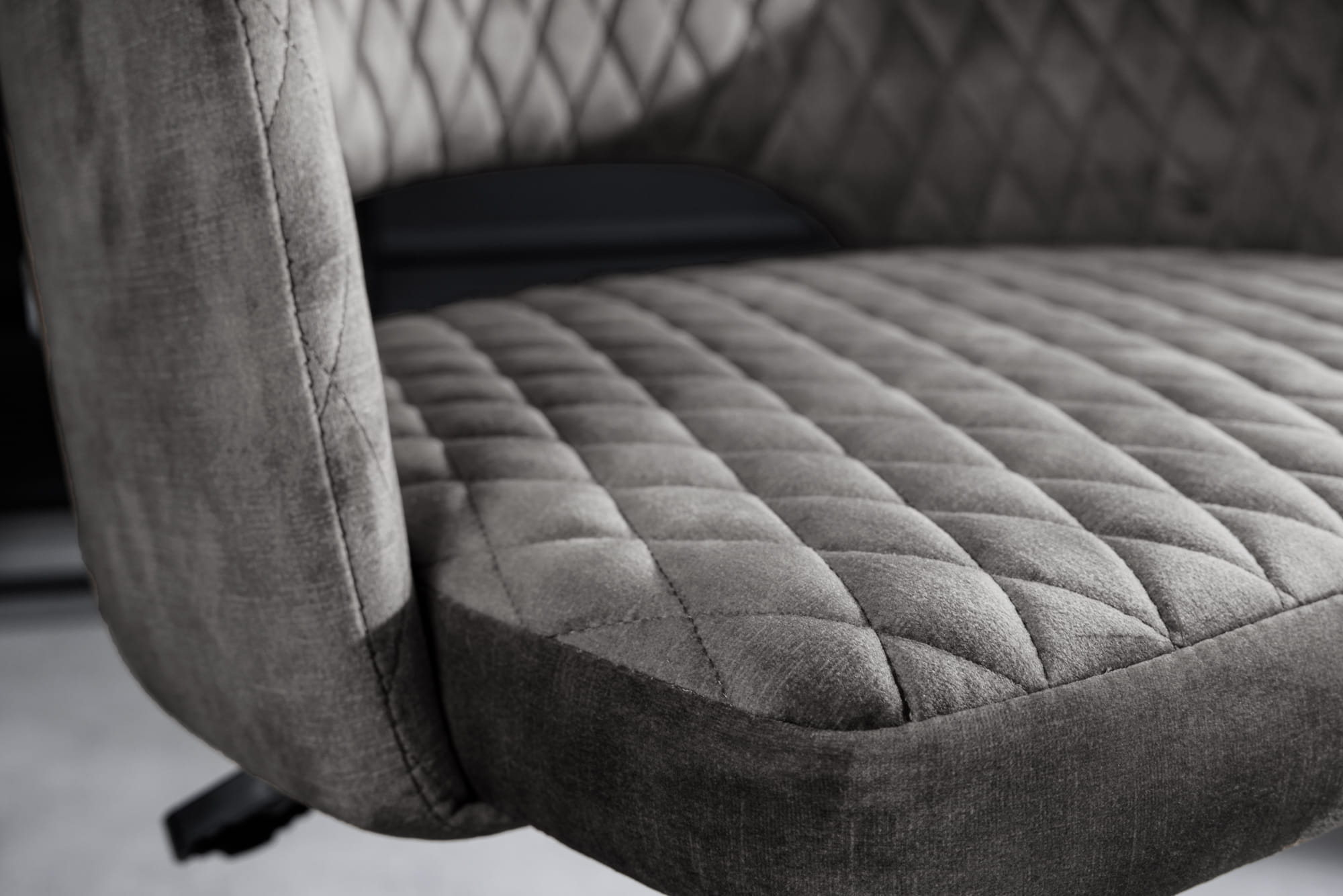 Krzesło biurowe, pikowane, welur w kolorze szarym, metalowe nogi, w stylu retro PARYŻ