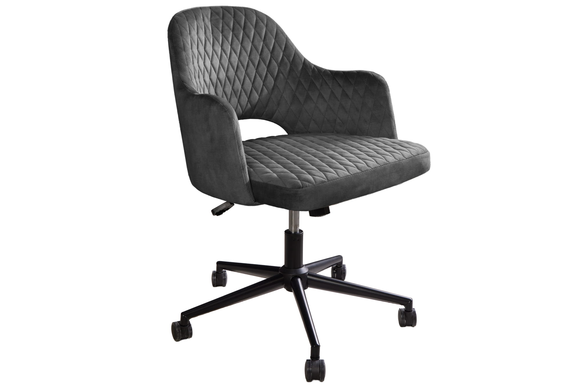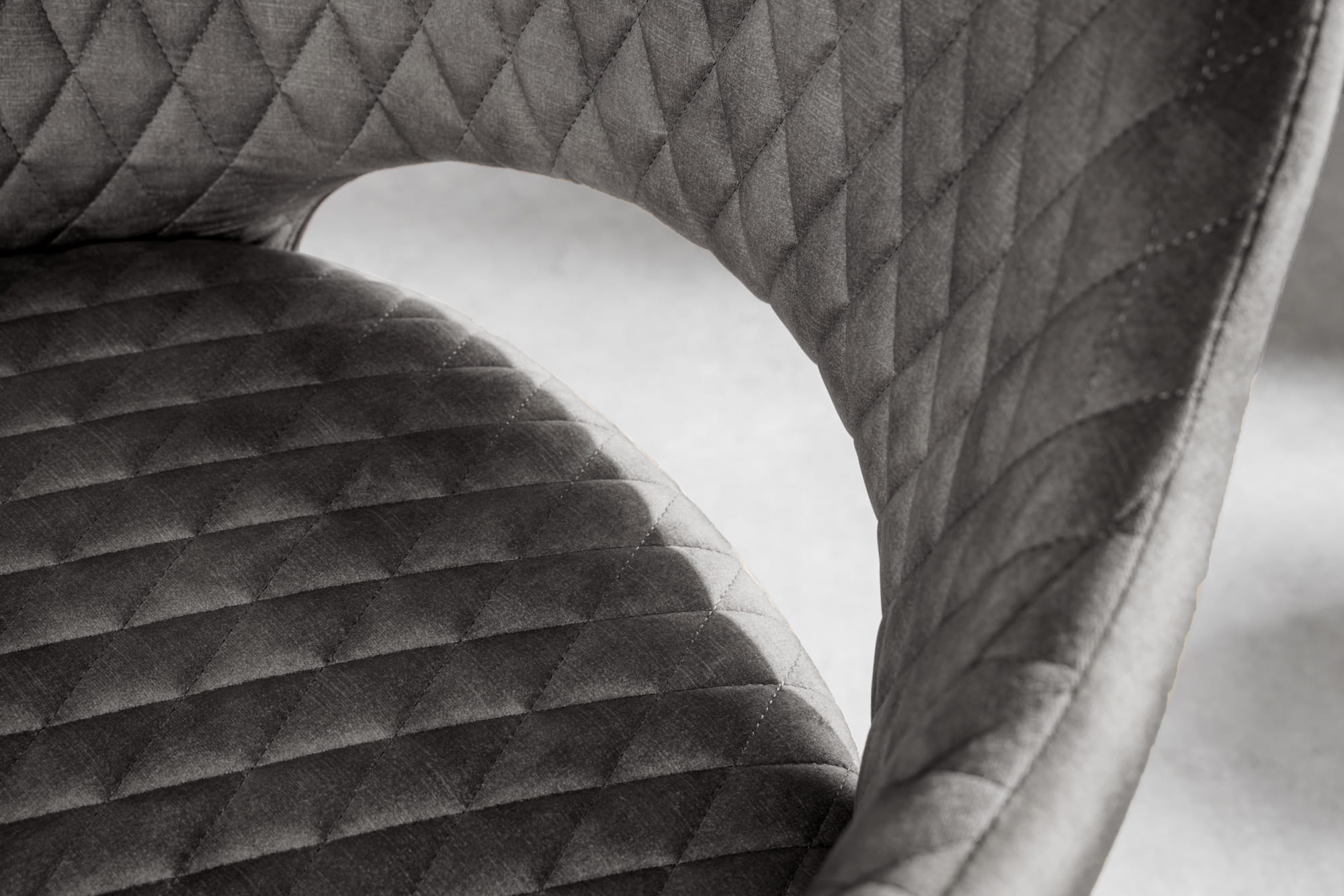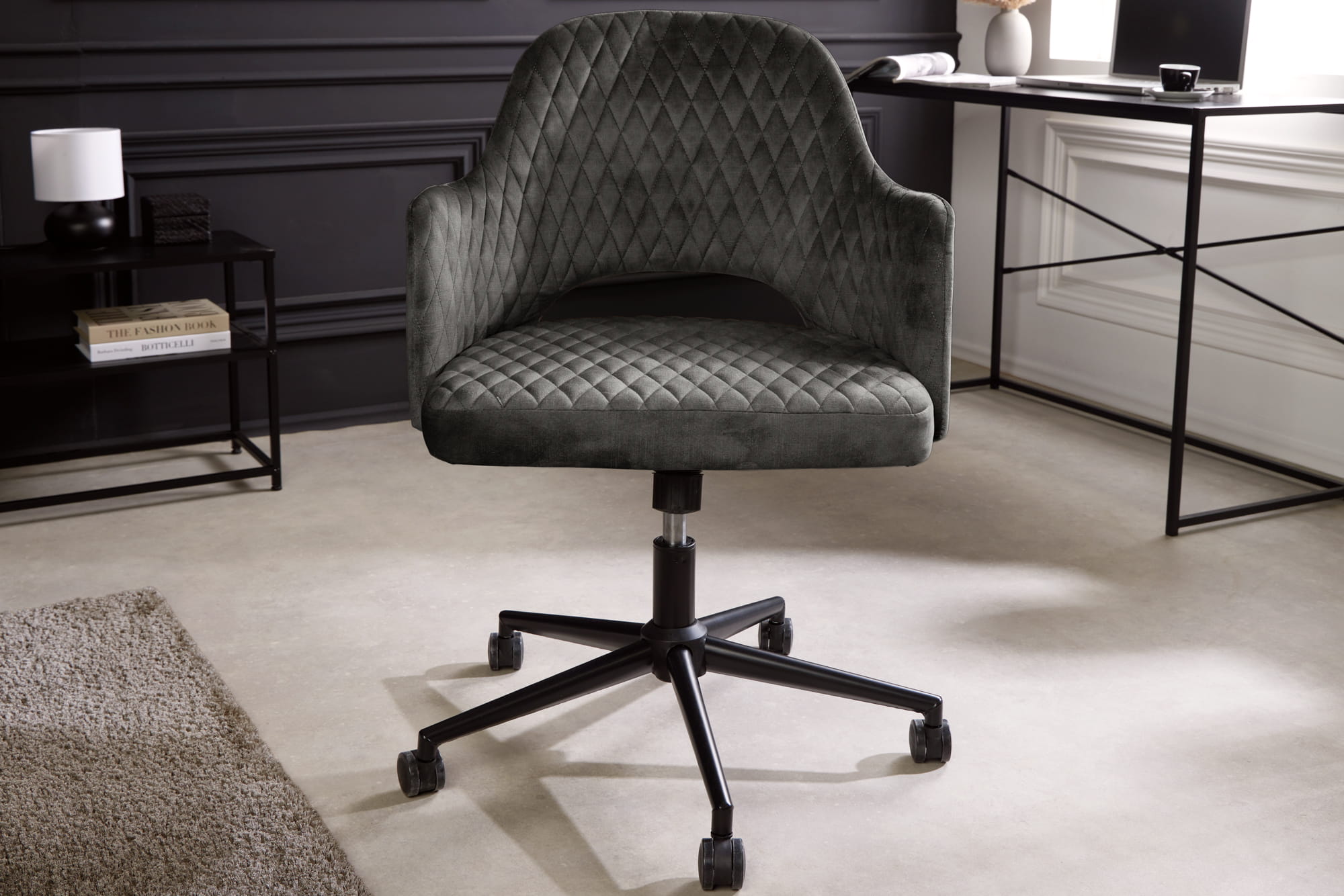 Krzesło biurowe, pikowane, welur w kolorze szarym, metalowe nogi, w stylu retro PARYŻ