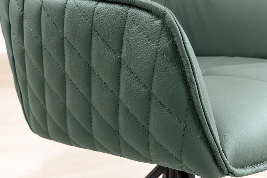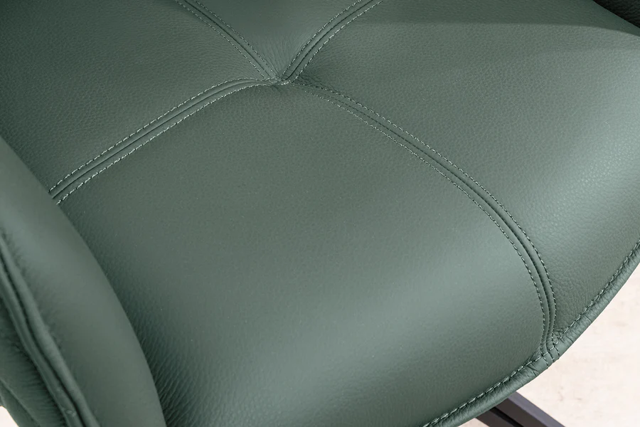 - siedzisko obite prawdziwą skórą w kolorze ciemnozielonym, wyprofilowane dla jak największego komfortu