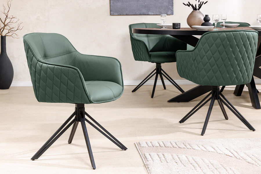 Krzesło obrotowe ze skóry w kolorze ciemnozielonym, na metalowych nogach EVALIA