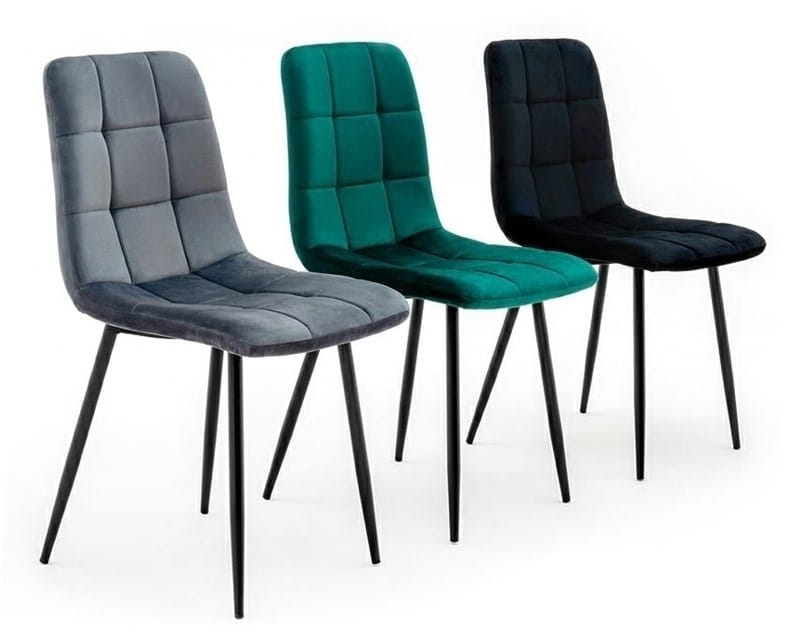 - wyprofilowane dla jak największego komfortu siedzisko i oparcie obite niezwykle przyjemnym welurem z szykownym pikowaniem w czarnej barwie