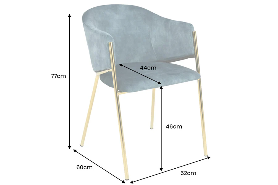 Krzesło velvet z podłokietnikami w kolorze niebieskim, na złotych nogach WIKE