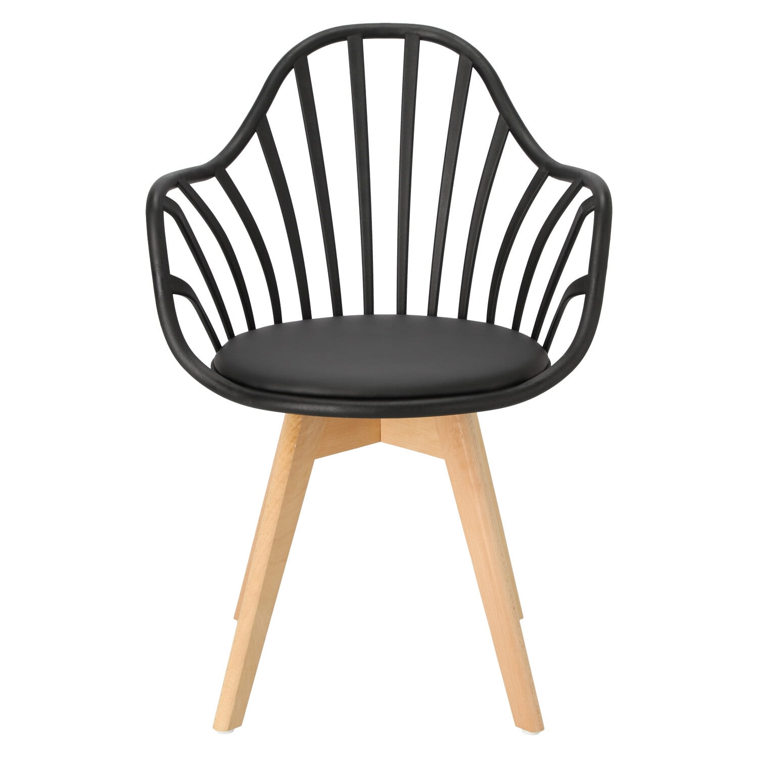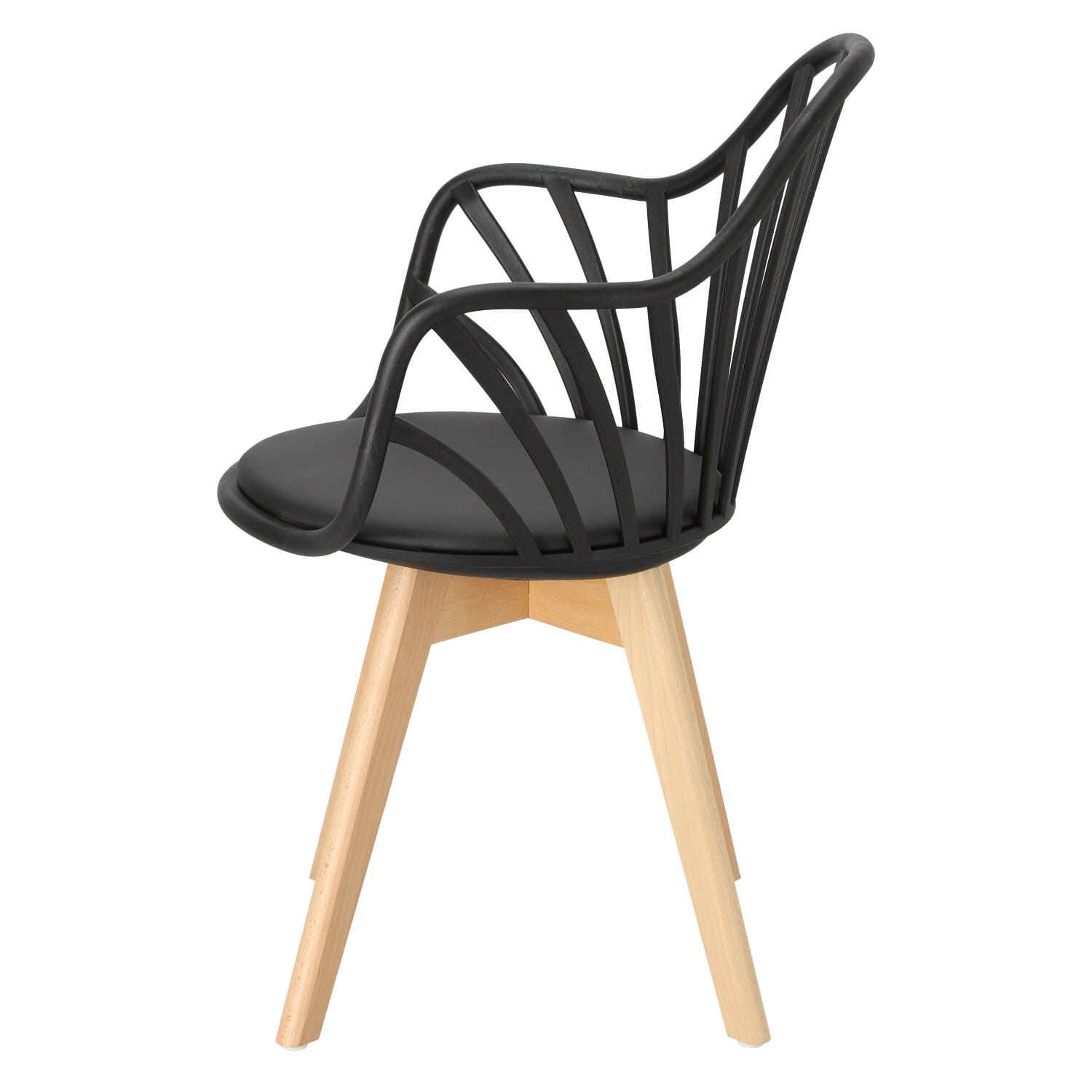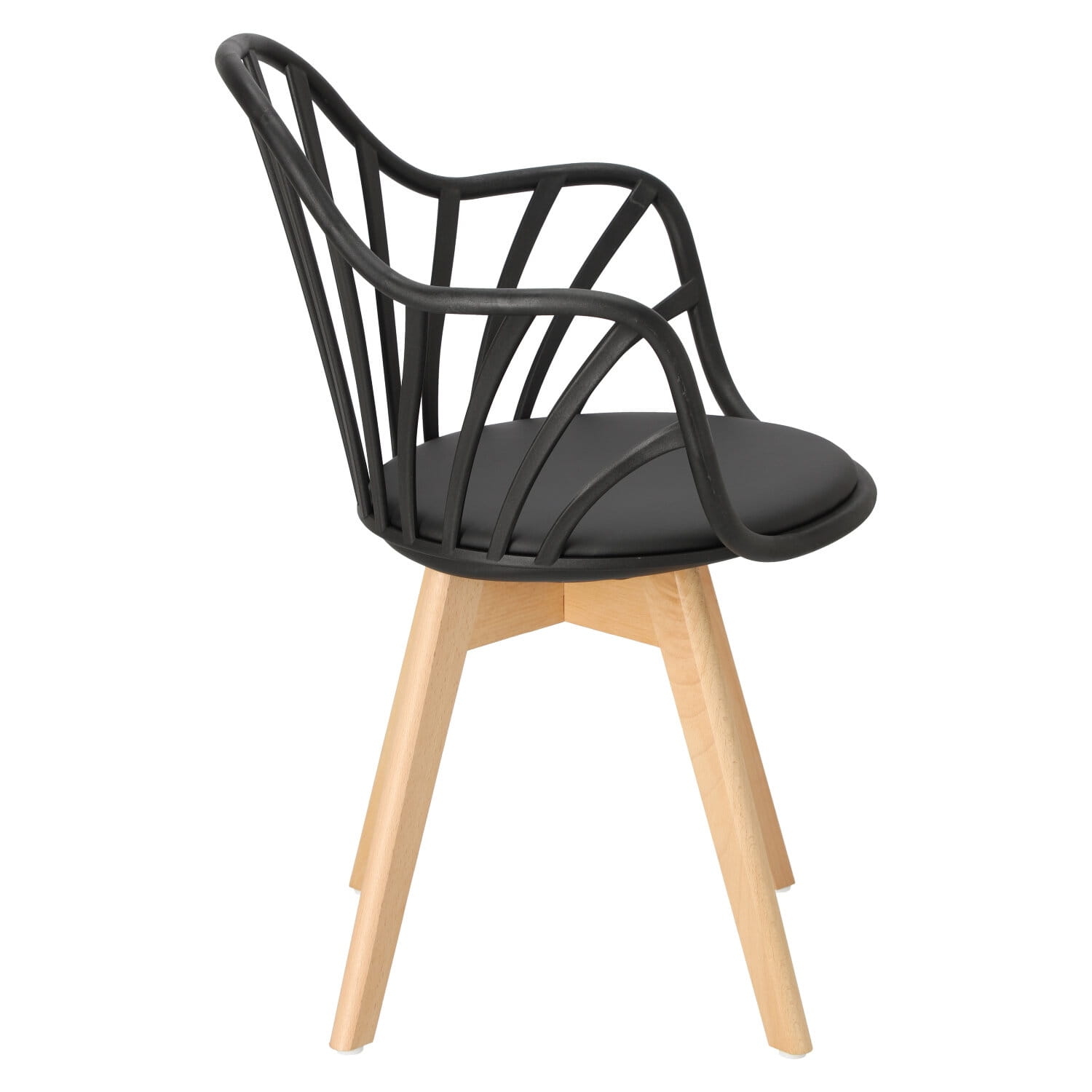 Krzesło z polipropylenu MUSZLA z podłokietnikami czarne, nogi drewno bukowe