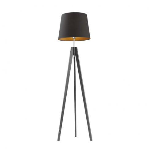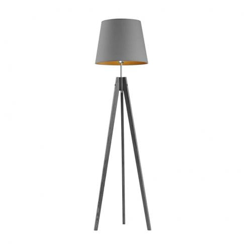 Lampa podłogowa drewniana z abażurem, trójnóg ARUBA GOLD