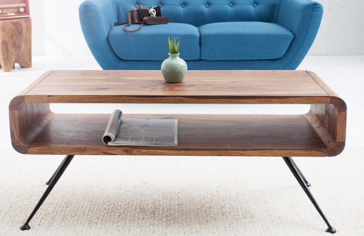 Loftowa ława stolik kawowy drewno sheesham, czarne metalowe nogi 100cm