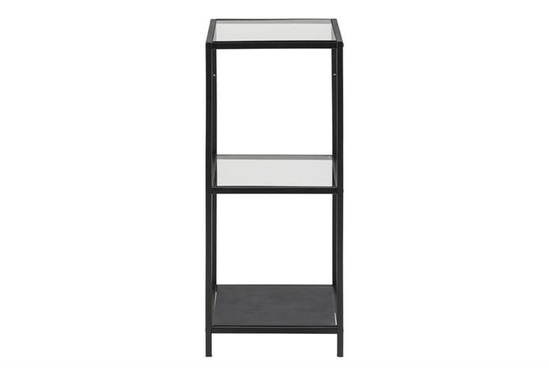 Metalowy regał stojący loft, czarny, półki szklane - SECRET