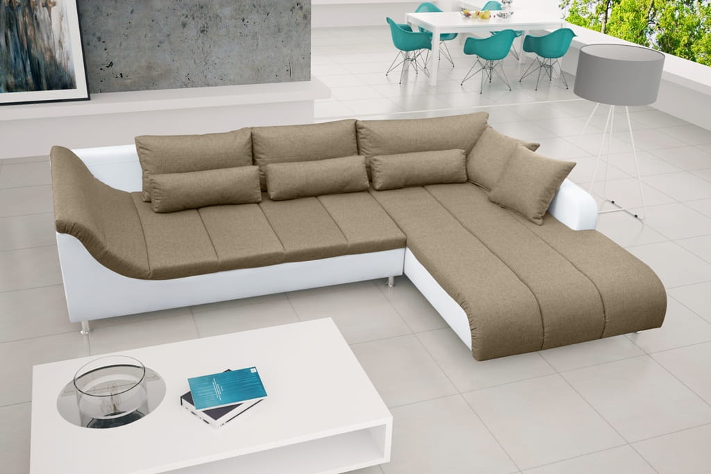Idealny mebel wypoczynkowy po pierwsze świetnie się prezentuje a po drugie drugie daje nam mnóstwo miejsca do siedzenia. Nowoczesny narożnik AV20 jest funkcjonalnym elementem wyposażenia, zaprojektowanym z myślą o komforcie podczas odpoczynku ale też będącym szykowną ozdobą wnętrza. Wykonany został z wytrzymałych, trwałych materiałów, a wszystkie rozwiązania jakie w nim zastosowano mają tylko jeden cel- jak największe zadowolenie użytkownika. Wybór kolorów umożliwia dopasowania narożnika do własnych potrzeb aranżacyjnych. Decydując się na zakup rozkładanego narożnika AV20 zyskasz: