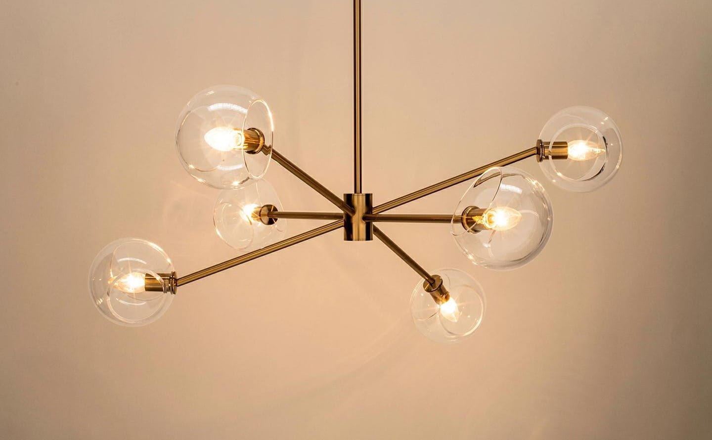 Nowoczesny żyrandol ze szklanymi kloszami, metalowa złota oprawa AMIR