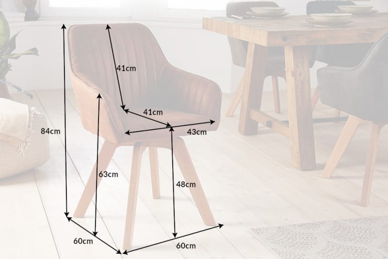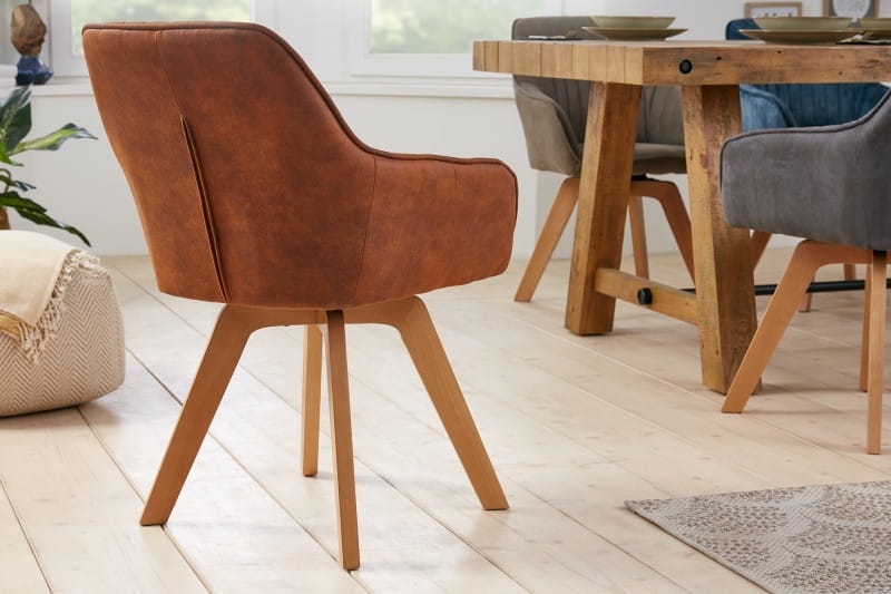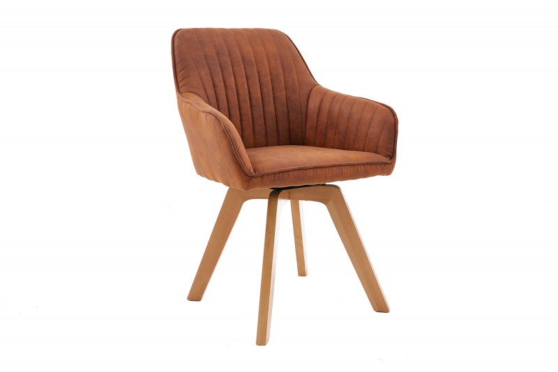 Obrotowe krzesło LIDIA brązowy welur vintage, drewniane nogi