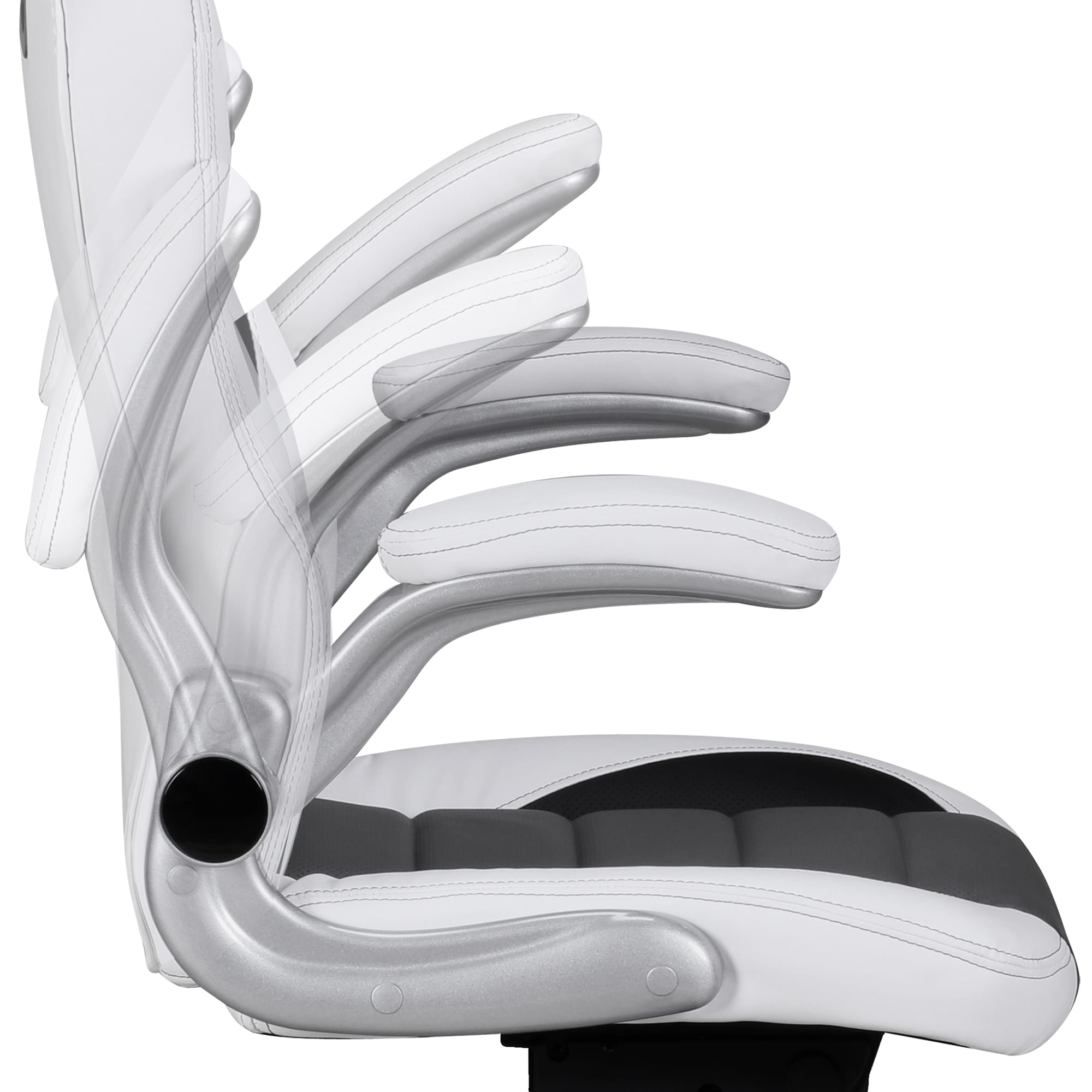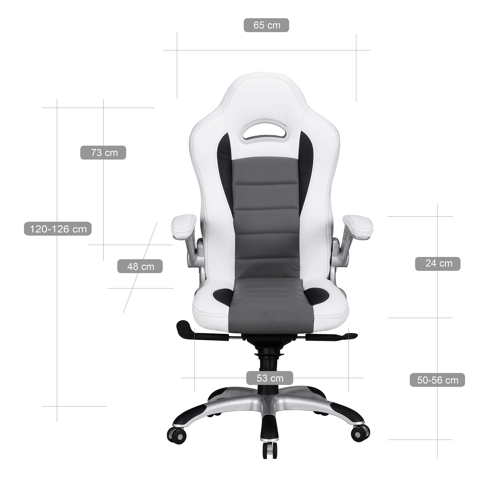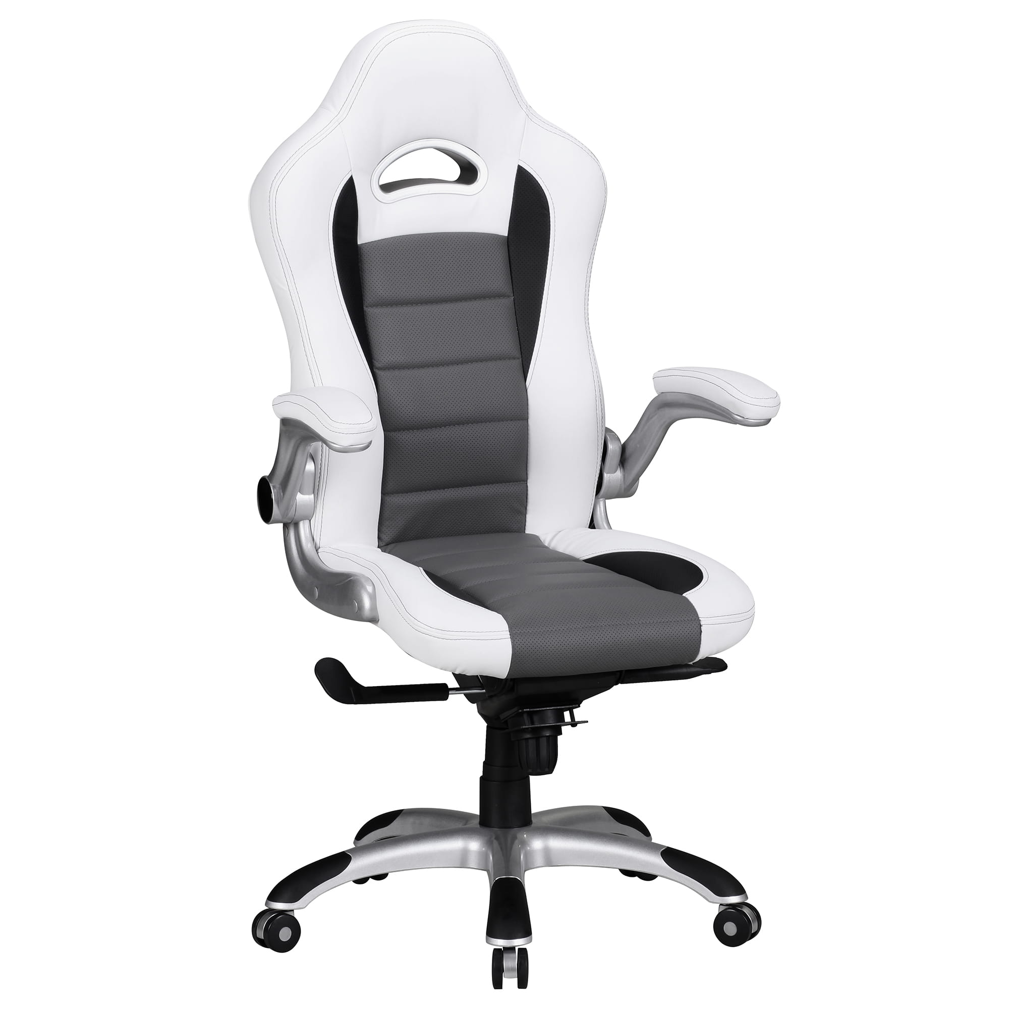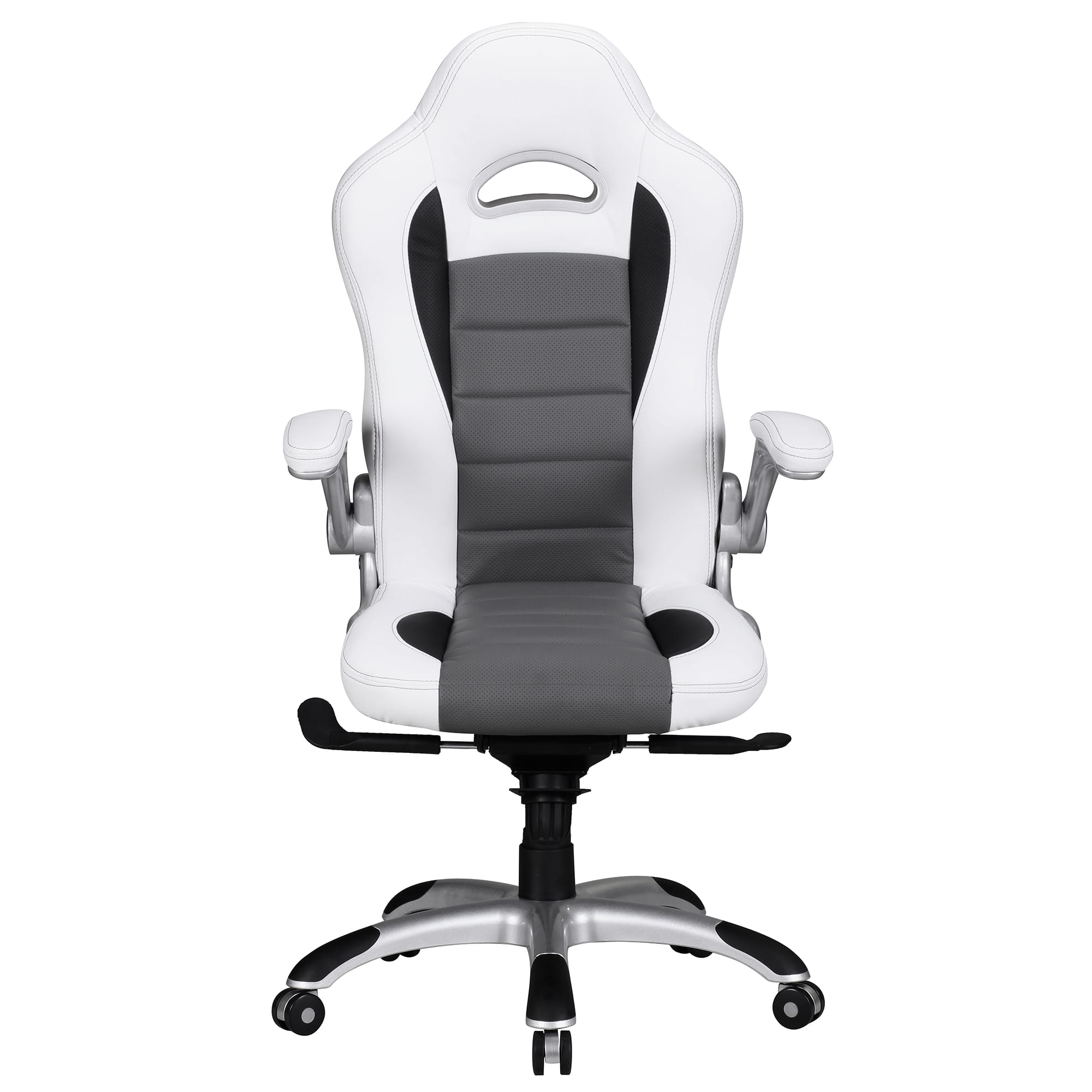 Obrotowy fotel biurowy, gamingowy, sztuczna skóra w kolorze biało-szarym FOREL