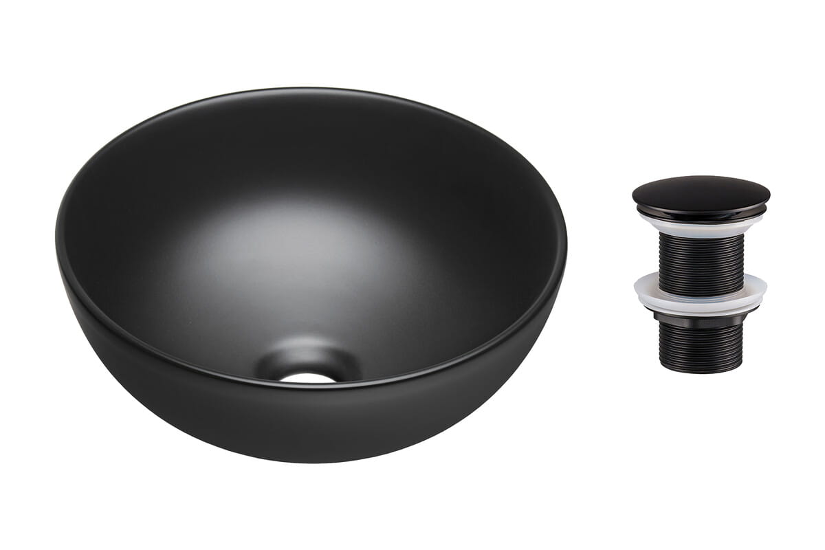 Okrągła umywalka nablatowa, ceramiczna, w kolorze czarnym 32 cm DOMENICA