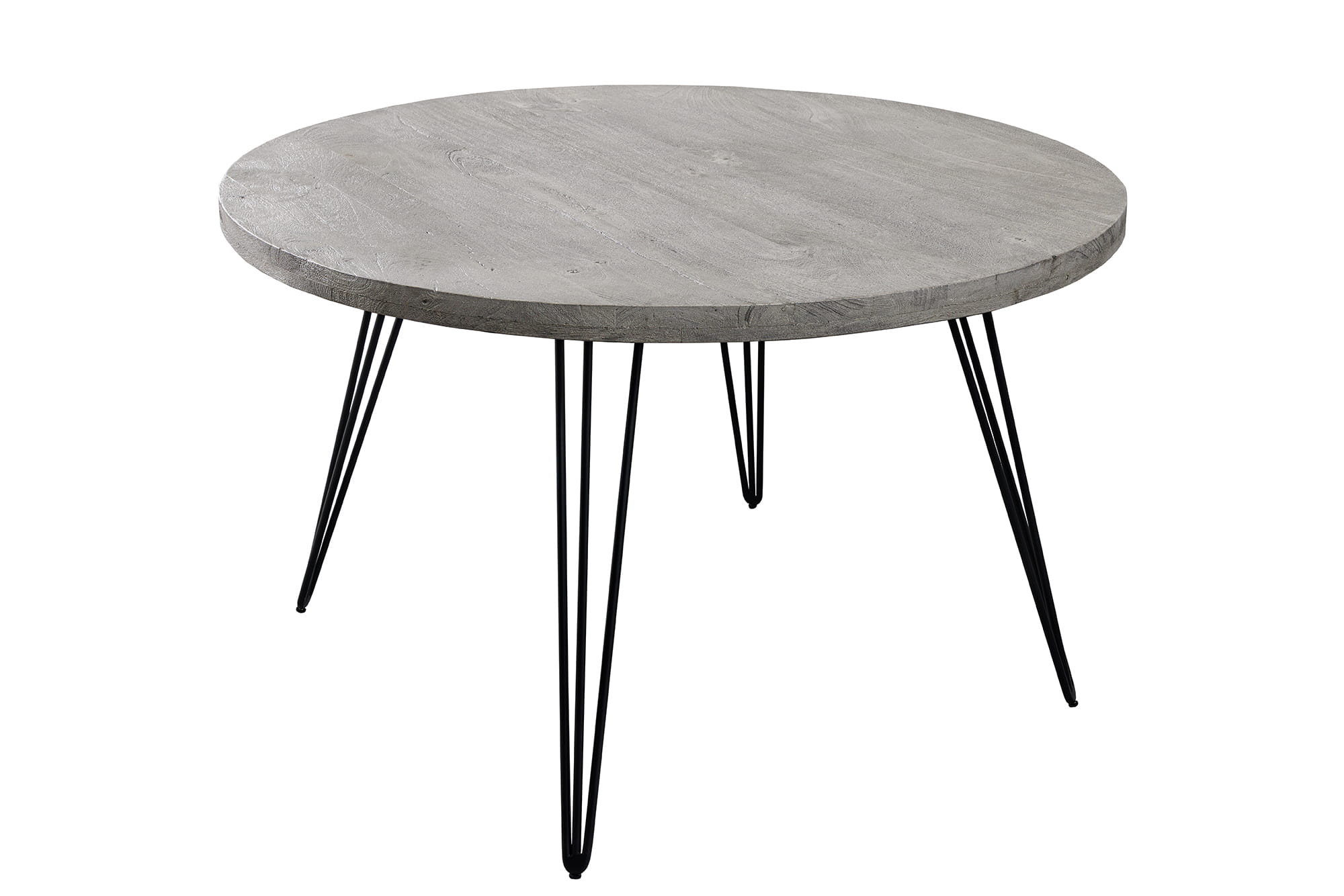 Okrągły stół z litego drewna mango, industrialny, metalowe nogi, szary 120 cm TOTS