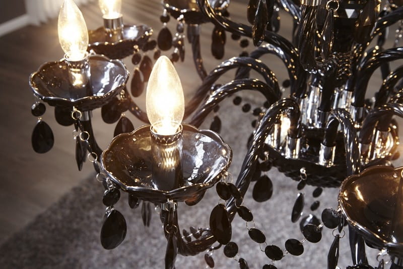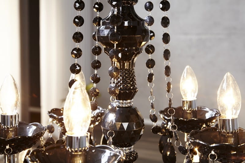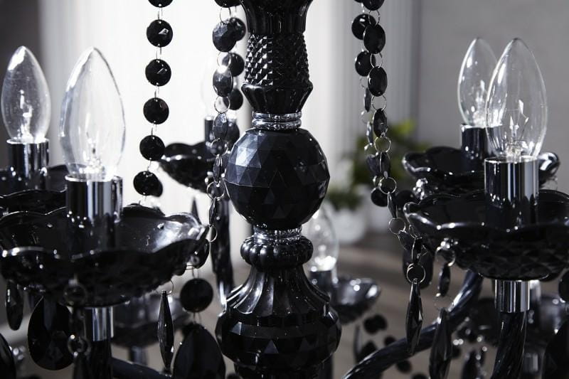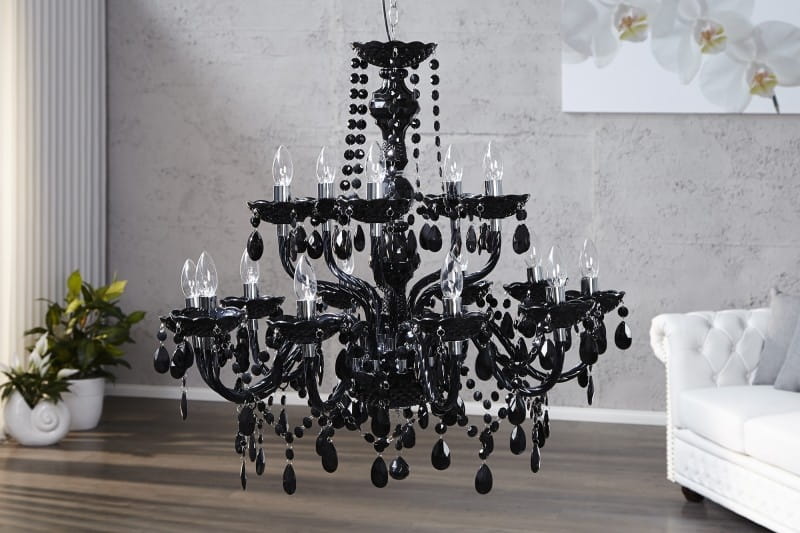Ozdobny żyrandol do salonu lub jadalni 15 źródeł światła, czarne kryształki