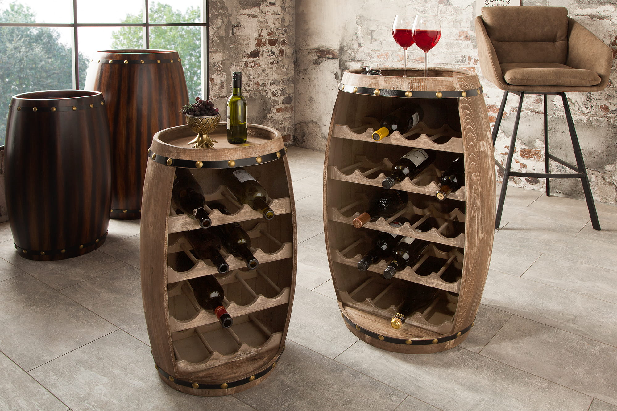 Półka beczka na wino, drewno jodłowe w kolorze naturalnym 64 cm VINE