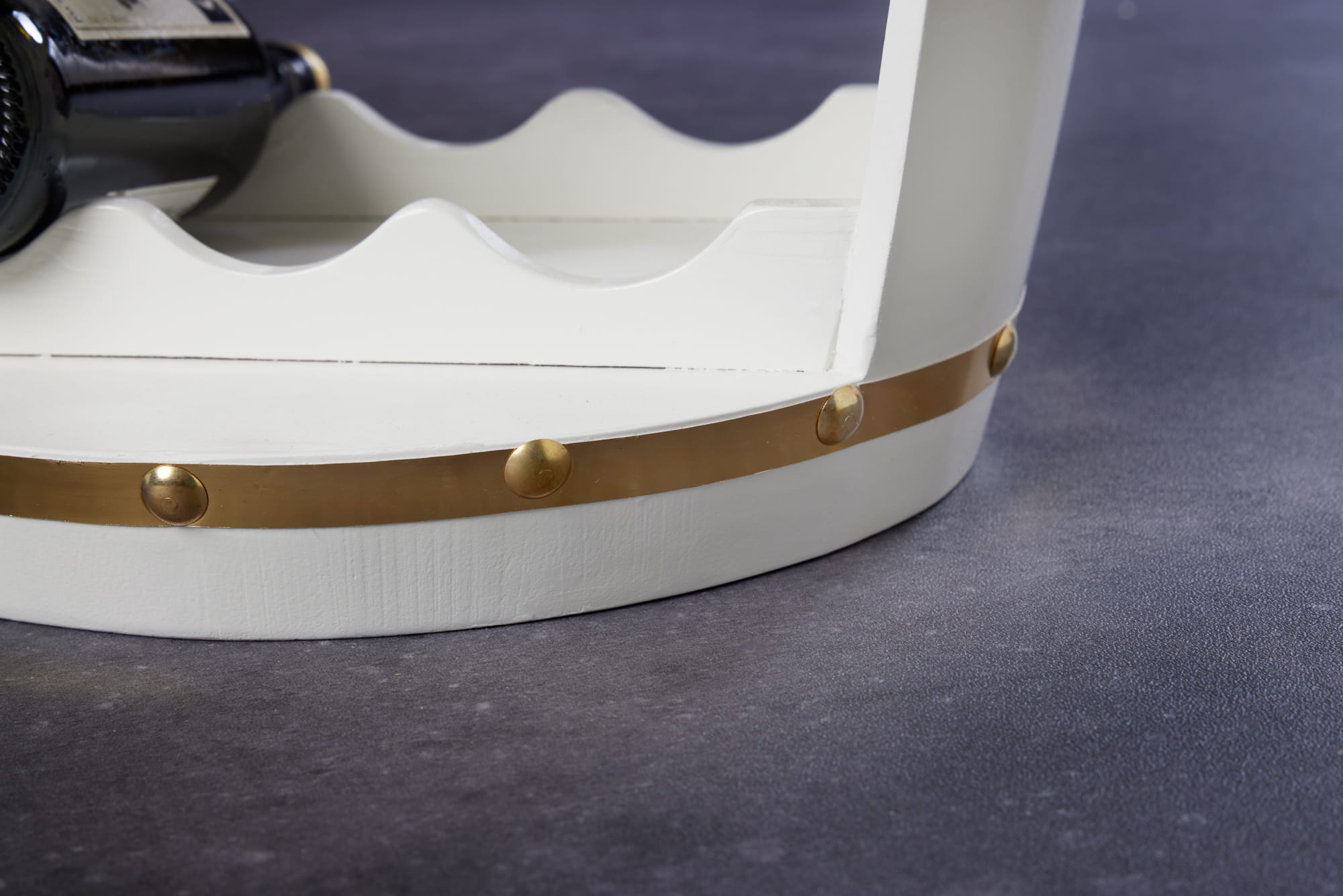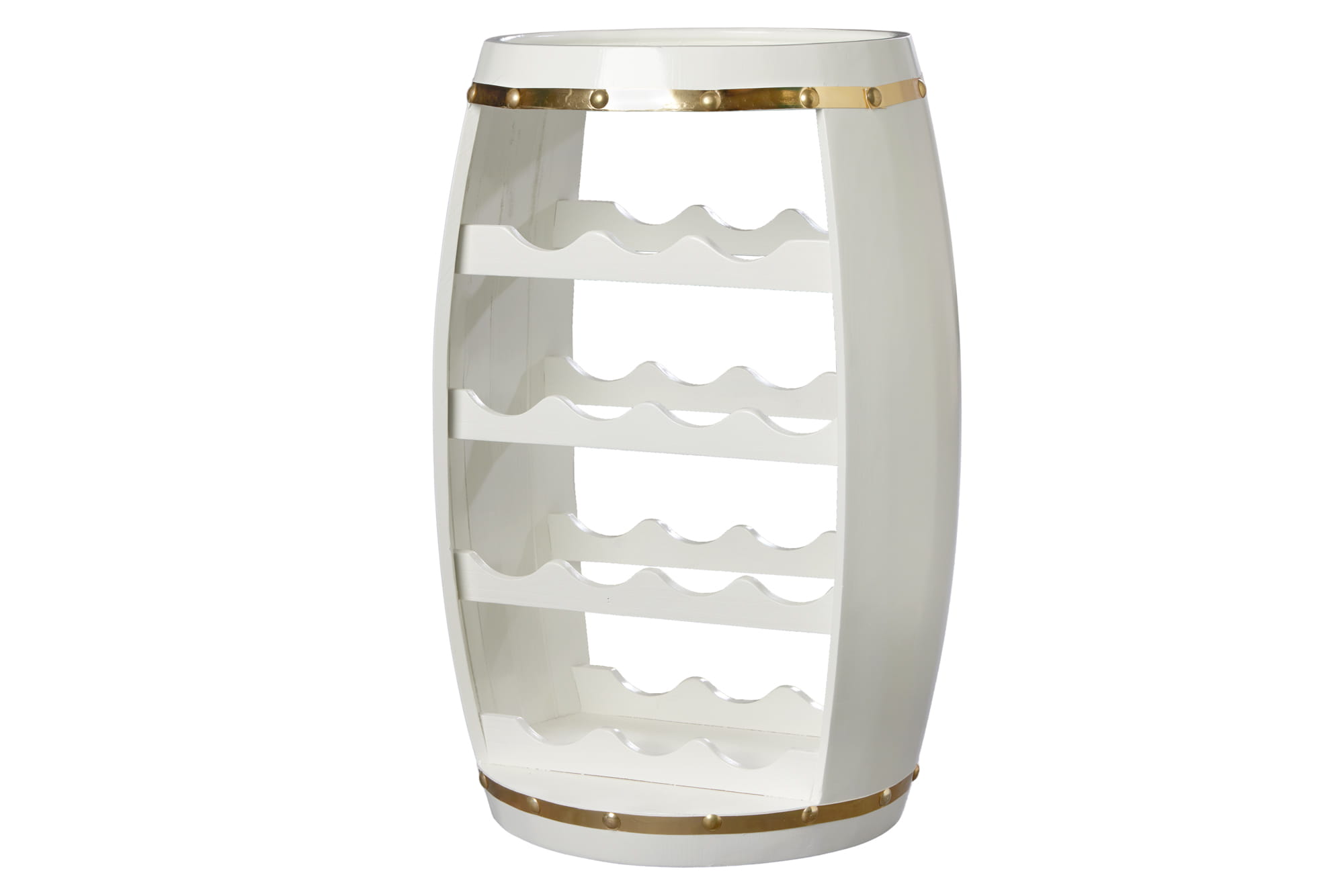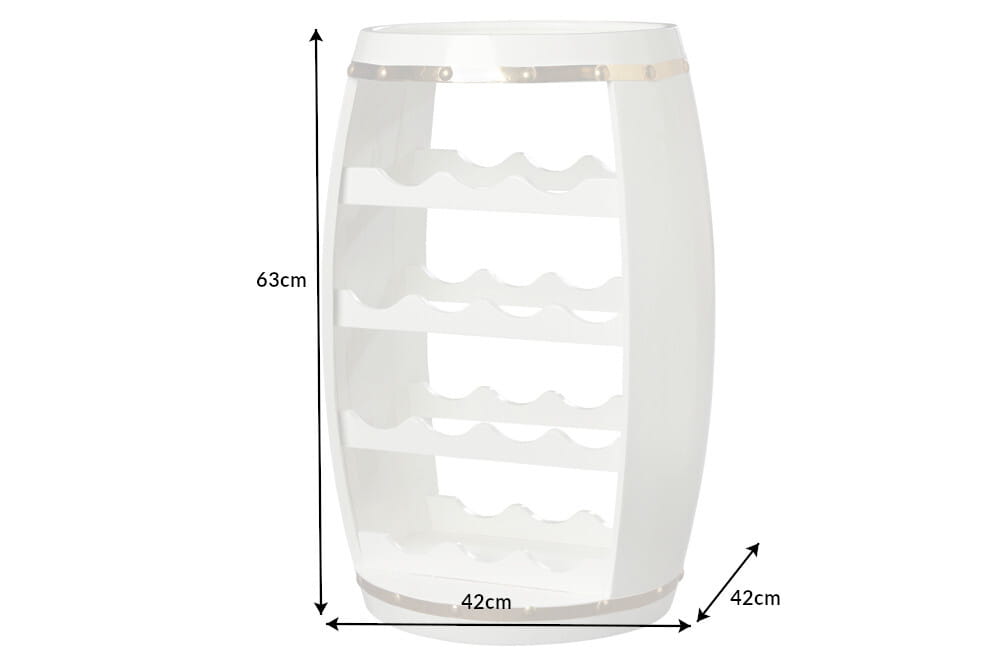Półka beczka na wino, drewno sosnowe w kolorze bieli i złota 63 cm VINE