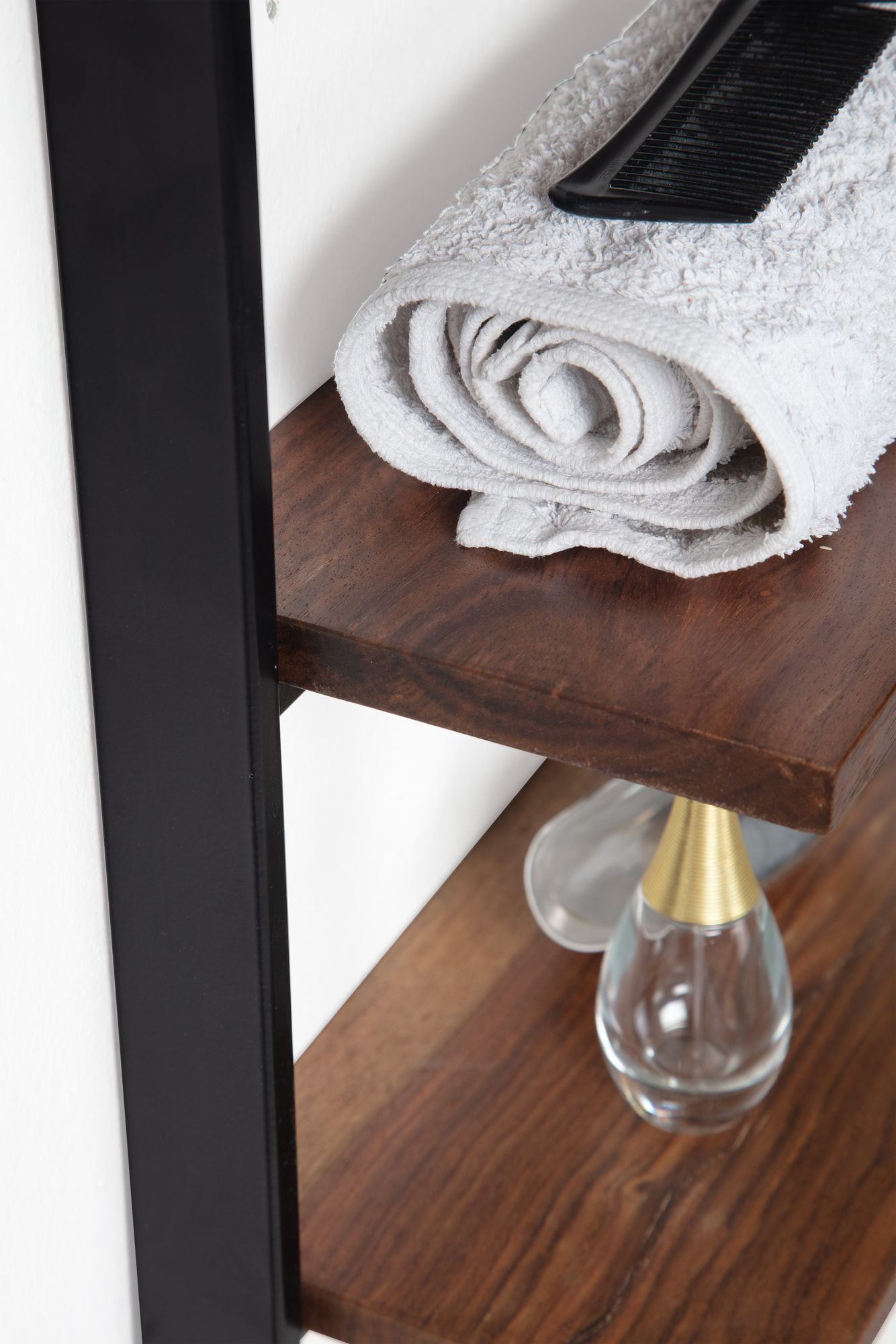 Półka ścienna z litego drewna sheesham, metalowy stelaż, loft 70 cm EDDIE