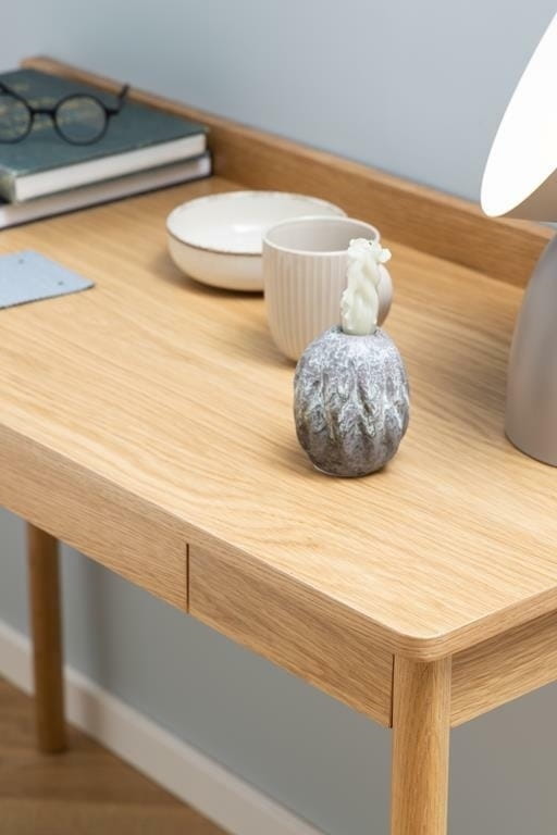 Skandynawskie biurko w kolorze dębu z szufladą, fornir dębowy 110 cm RANSEN