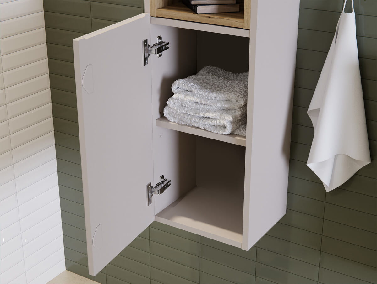 Słupek łazienkowy z półkami, ryflowane fronty w kolorze kaszmir 140/30 cm TAJGA