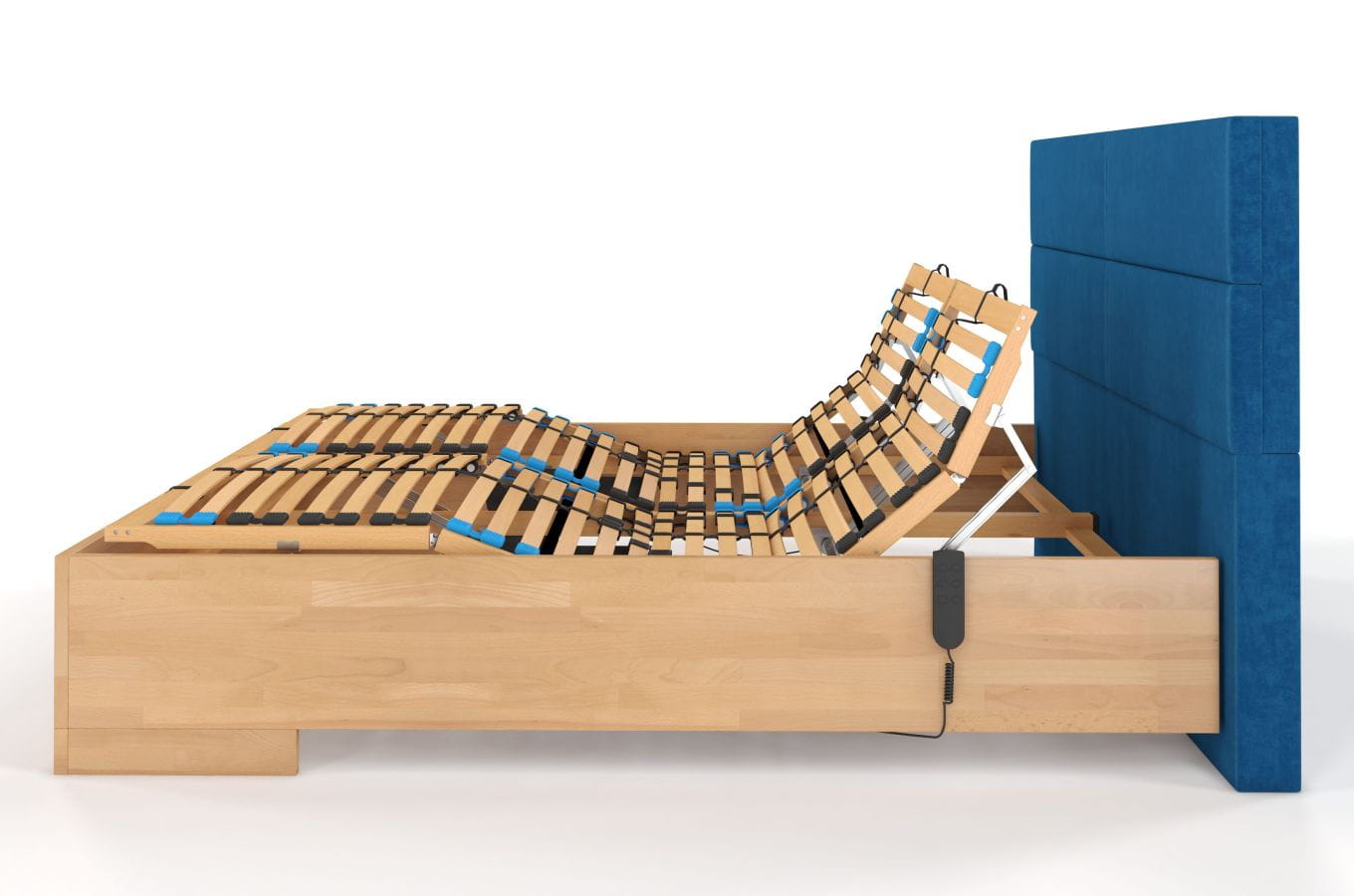 Sklejka brzozowa z jakiej wykonano stelaż cechuje się wysoką jakością, wytrzymałością, stabilnością a także niewielkim ciężarem. To idealny materiał do tego typu mebli. Dodatkowe wzmocnienie gwarantuje bezpieczeństwo przez długie lata użytkowania. Regulacja elastyczności w części lędźwiowej zapewnia niezwykły komfort podczas odpoczynku, dbając o naszą wygodę i nasze zdrowie. Ogromnym atutem w tym produkcie jest możliwość elektrycznej regulacji wysokości zagłówka i podnóżka, dzięki której możemy ustawić wysokość od pozycji całkowicie leżącej po relaksującą, przydatna zwłaszcza podczas chwil spędzonych z książką. Takie zalety sprawdzą się w każdej sypialni, a to miejsce gdzie mamy poczuć się przyjemnie i z chęcią do niego wracać.