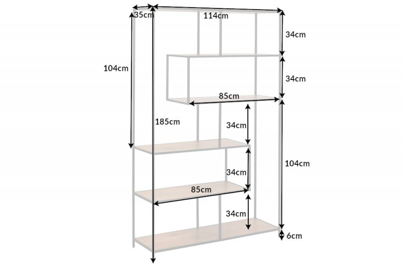 Stojący regał w kolorze drewna dębowego, 185x115 cm, czarny metal - SEKEND