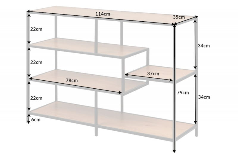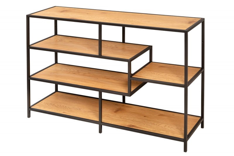 Stojący regał w kolorze drewna dębowego, czarny metal - SEKEND