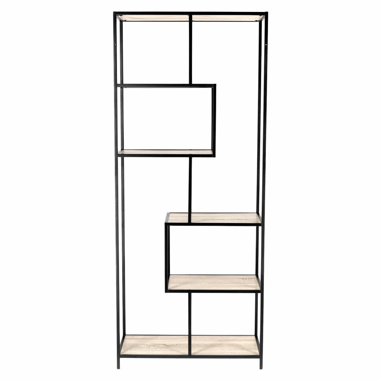 Stojący regał w kolorze drewna jasny dąb, czarny metal - ONDY LOFT II