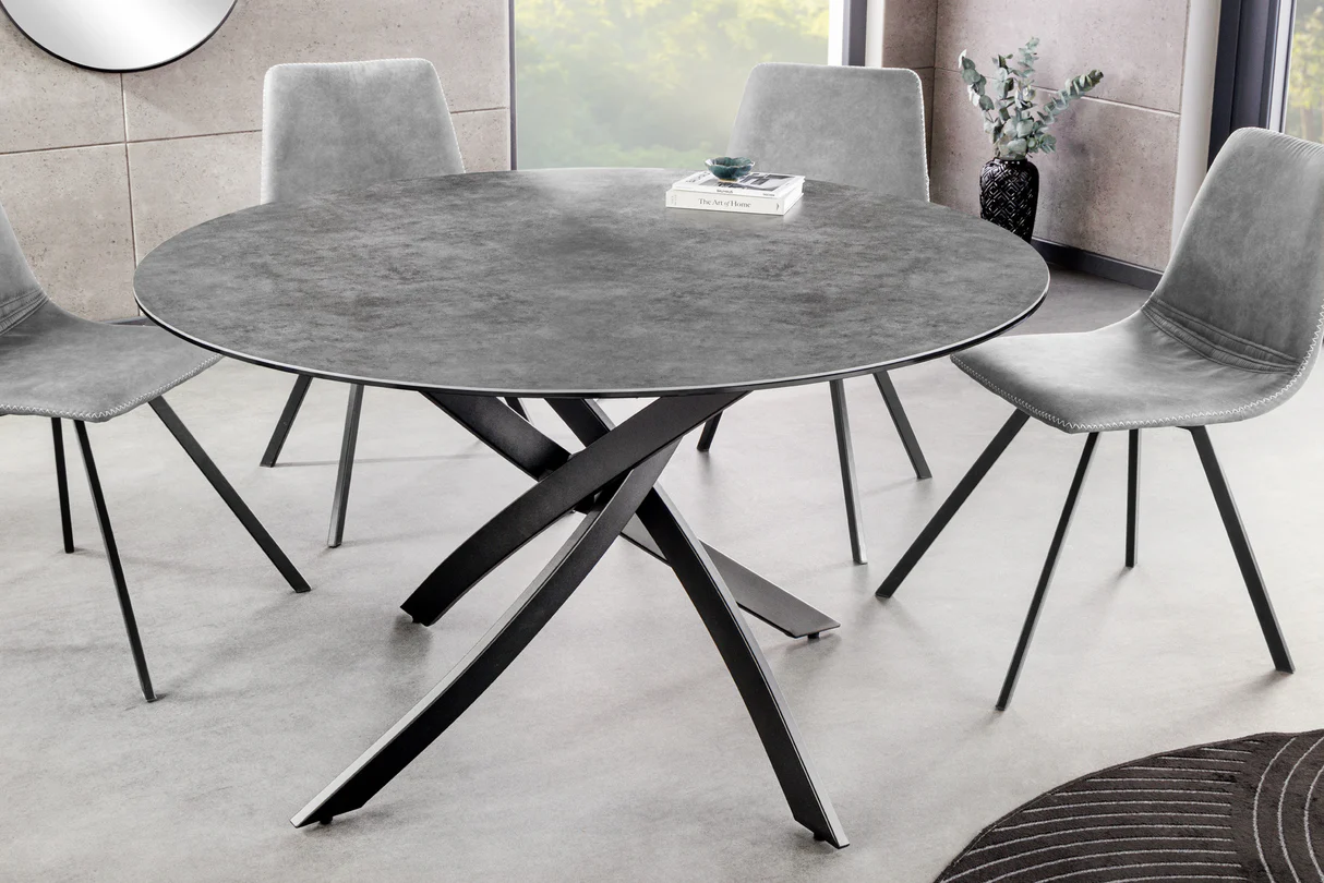 Stół z blatem ceramicznym o wyglądzie antracytu, na metalowych nogach 120 cm PINCO
