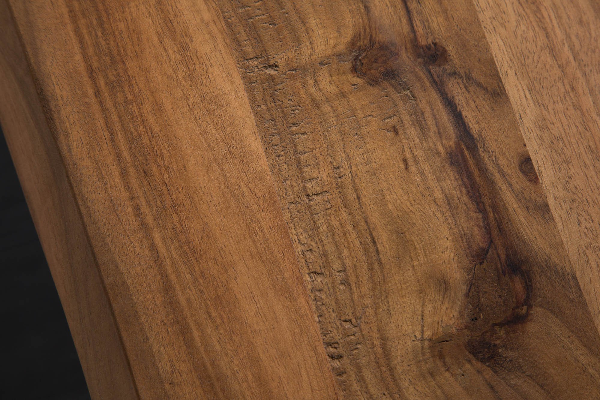 Meble wykonane z drewna, w dodatku tak wyjątkowego, to ponadczasowy styl i klasa sama w sobie. Stół BOA zaprojektowany został niezwykle starannie, zaspokajając najbardziej wyrafinowane gusta i oczekiwania. Drewno akacjowe posiada szereg zalet, jakie docenimy podczas każdego dnia. Upływający czas w tym przypadku tylko podbija jego atuty. Drewno to z każdą chwilą nabiera uroku, zachwycając wszystkich. Dzięki swojej elastyczności wyróżnia się odpornością na wszelkiego rodzaju niedoskonałości, takie jak zarysowania czy pęknięcia. Jest bardzo wytrzymałe i trwałe, jest więc to zakup na lata. Dopełnieniem jest czarna podstawa z metalu łącząca całość i podkreślająca unikatowy charakter tego produktu.