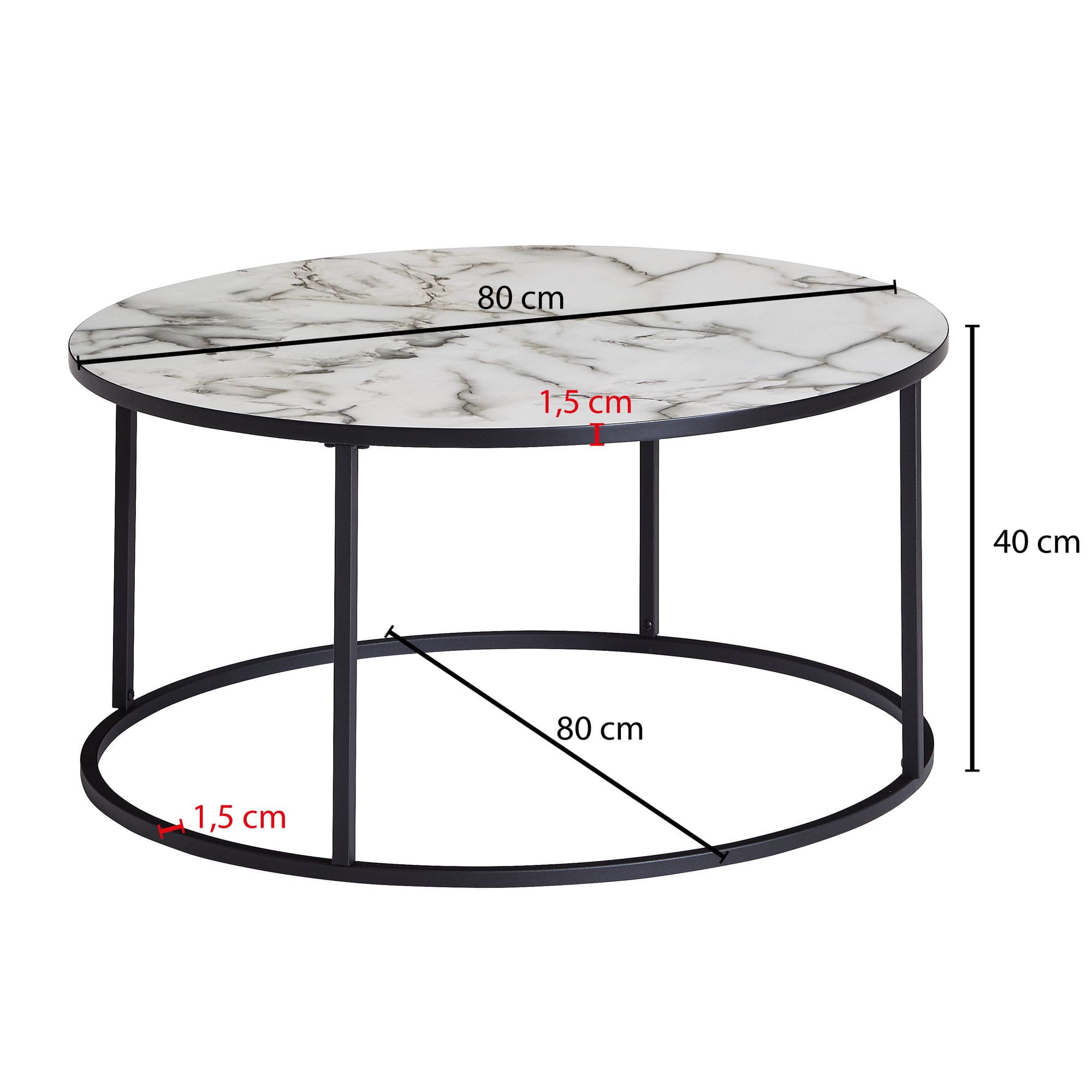 • Średnica blatu stołu: 80 cm