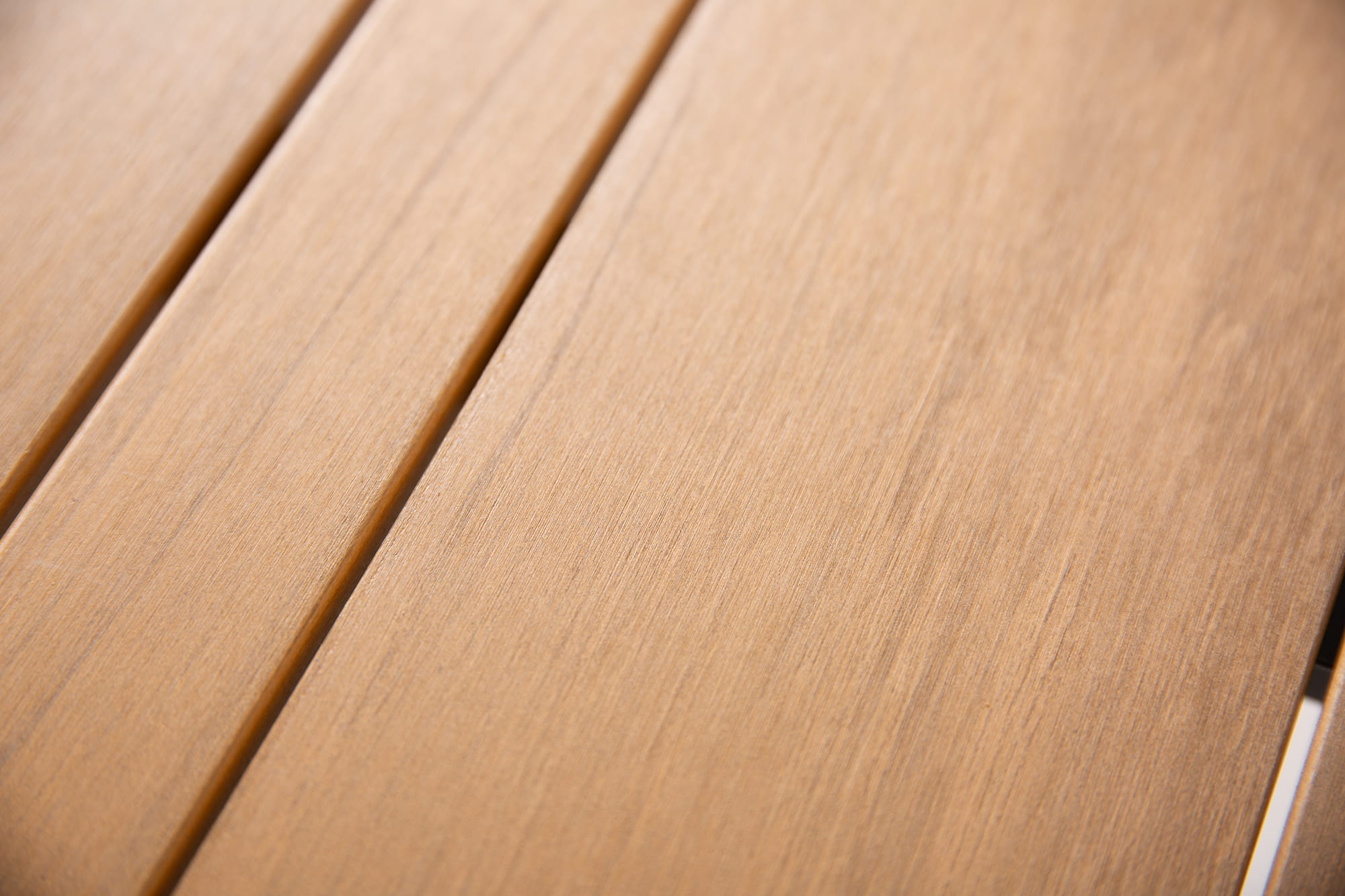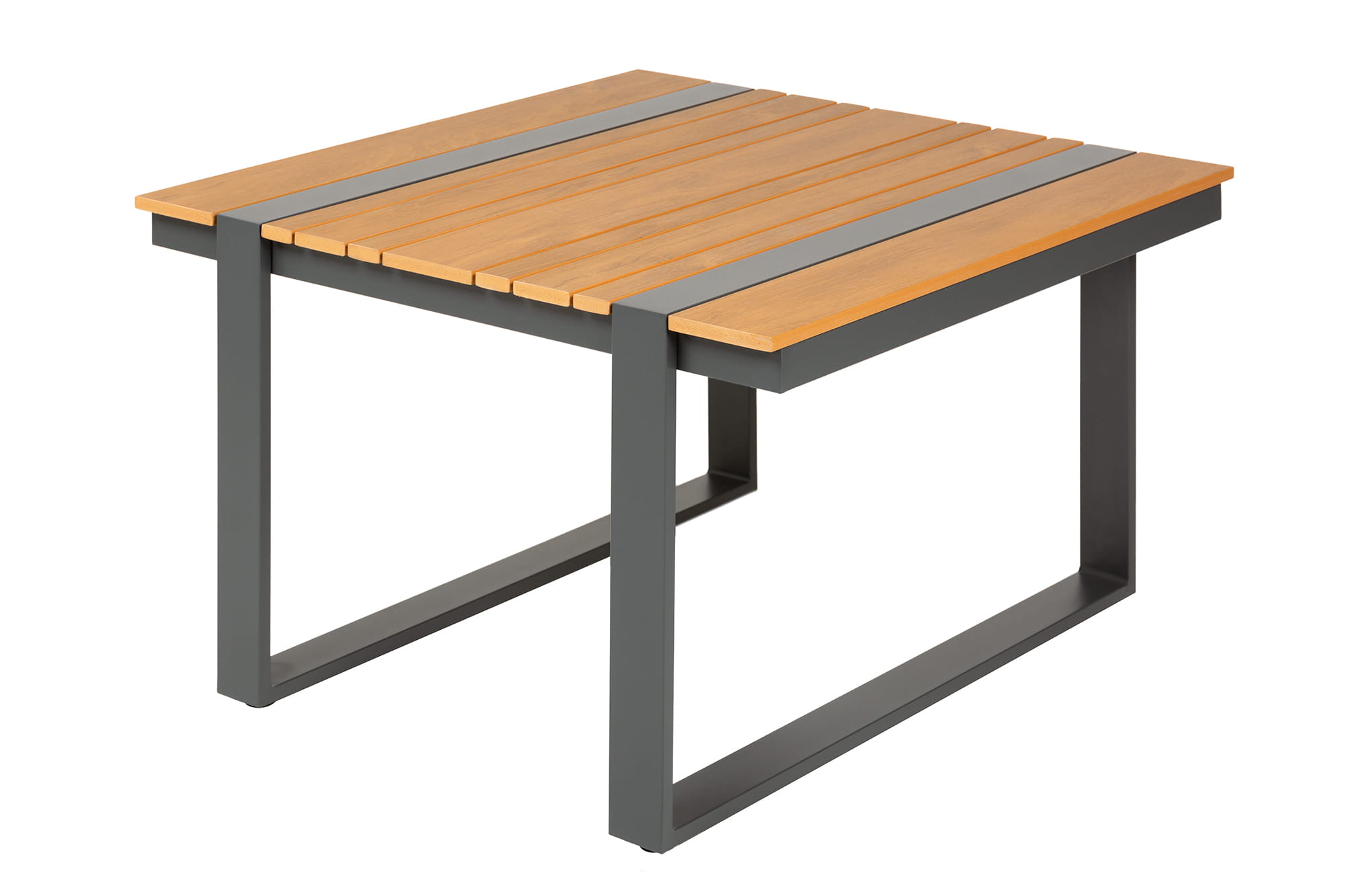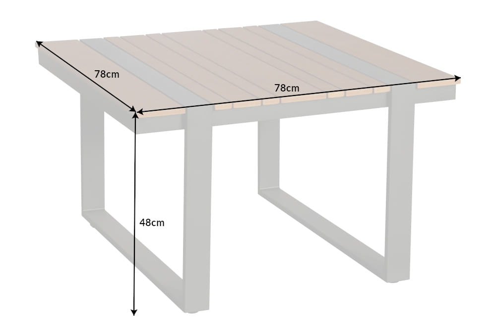 Stolik ogrodowy, blat polywood w kolorze drewna, metalowy stelaż 78 cm CAPRIA